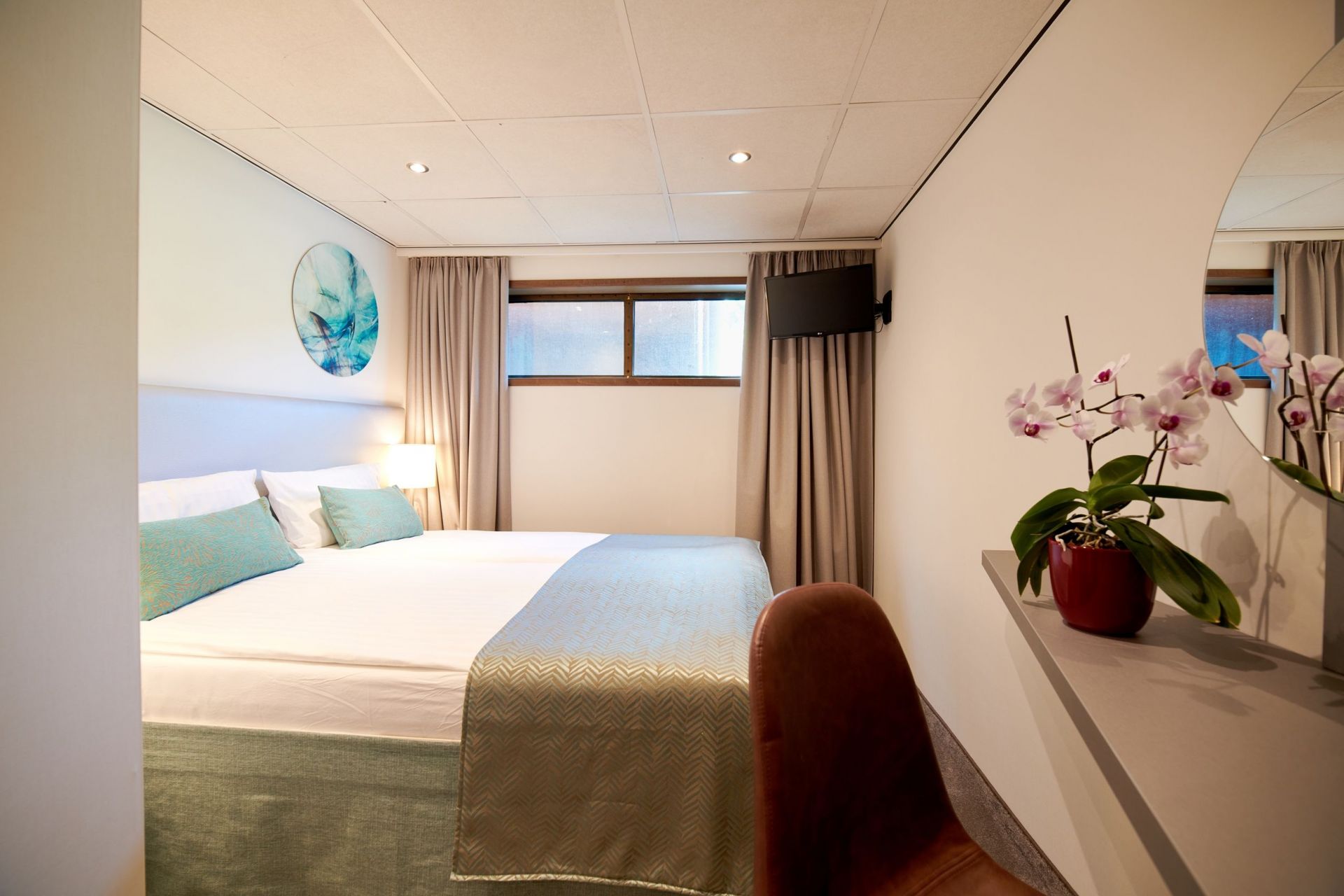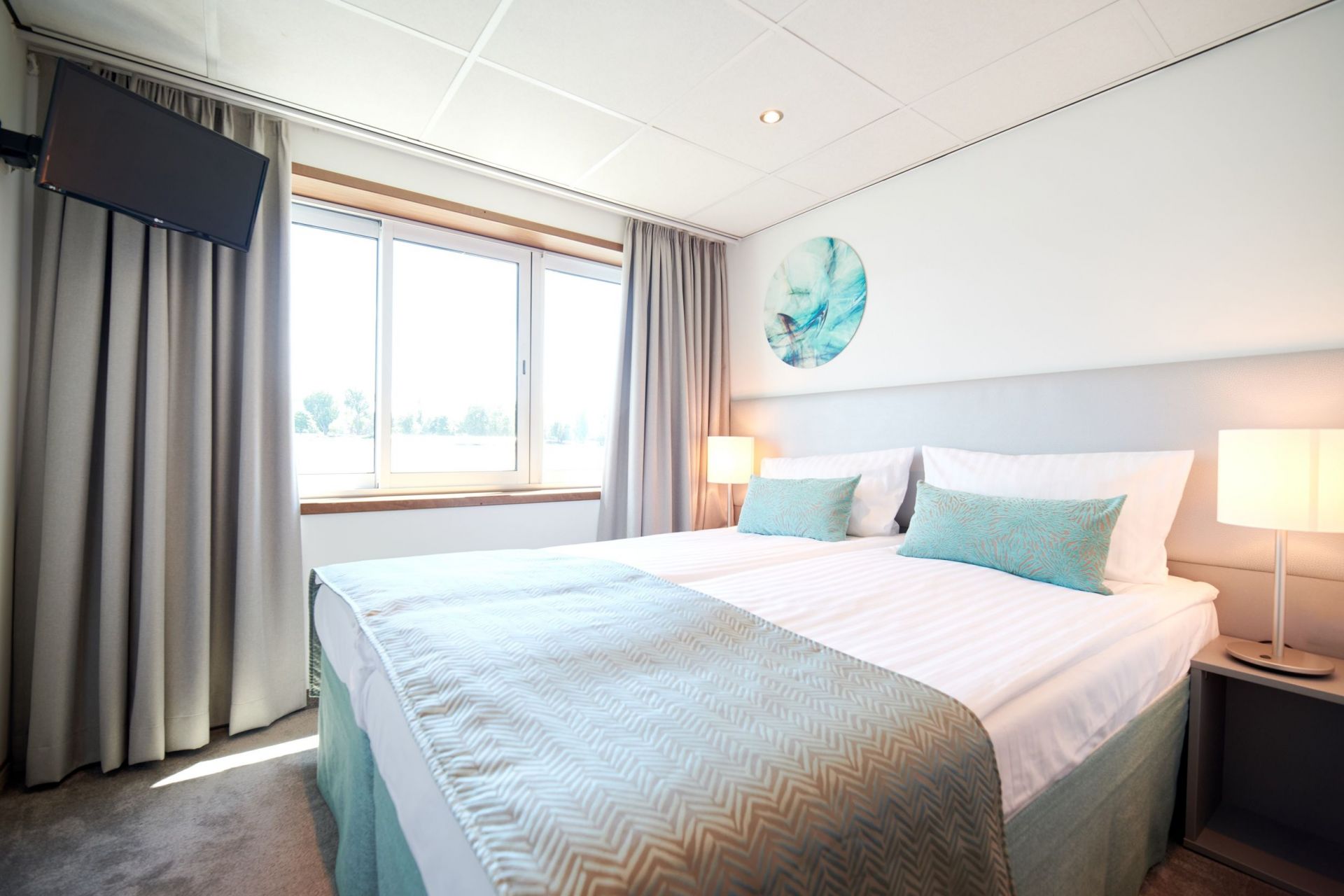 Каютите на средната палуба имат панорамни прозорци, които се отварят.