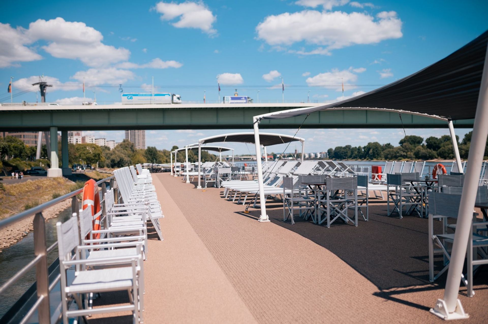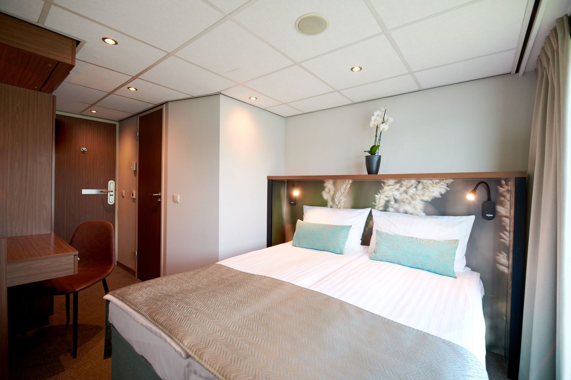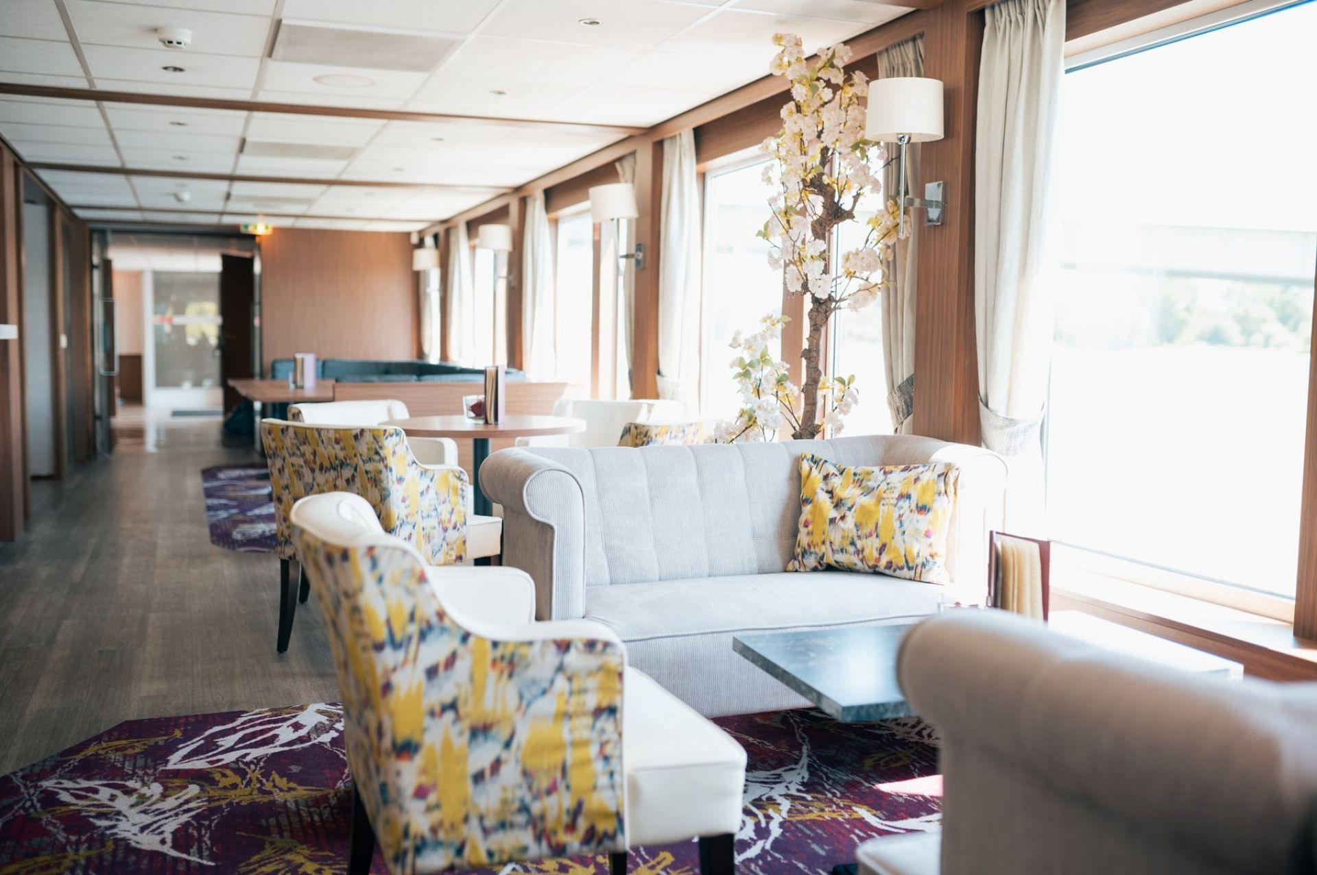 Каютите на горната палуба имат големи френски прозорци, които се отварят.