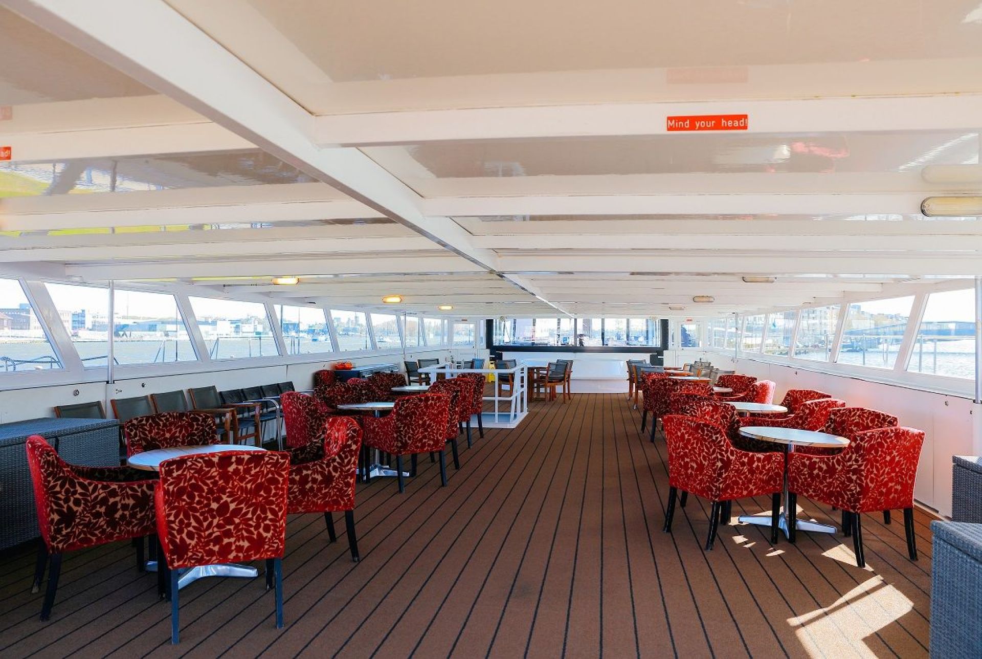 Каютите на основна палуба са с легла, които през деня се вдигат и превръщат в удобни места за сядане. Имат панорамни прозорци.