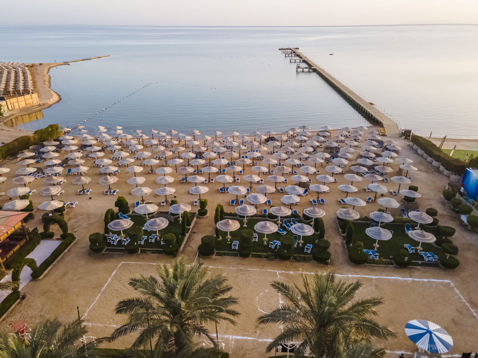 Собствен, пясъчно-каменист с корали. Чадъри, шезлонги и матраци на плажа и при басейна - безплатно. Плажни кърпи – безплатно.