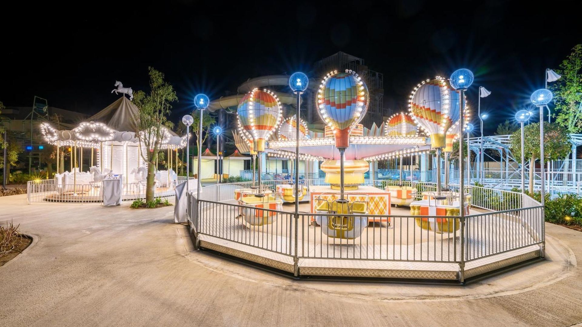 Увеселителният парк разполага с различни въртележки, блъскащи колички, мини влакче, самба балон, трамплин, детска площадка, мини театър.