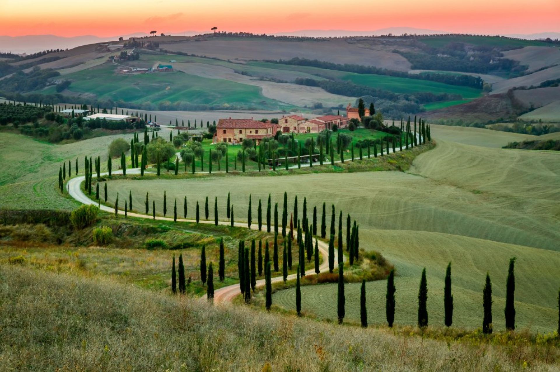 Отпьтуване за Пиенца. Преминаване през живописния район Вал д‘Орча. Ще се насладите на изключителни тоскански гледки, ниски хьлмове потьнали в зеленина от кипариси, пинии и маслинови гори.
