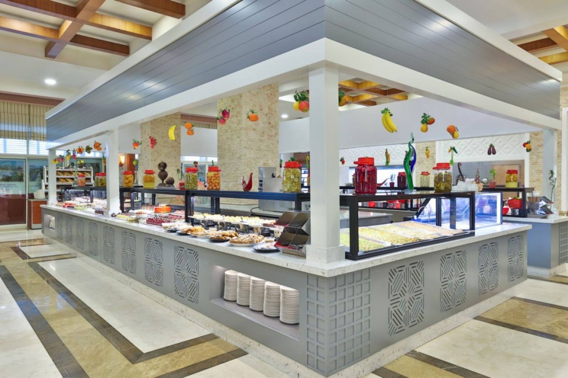 На територията на хотела: Основен ресторант, а - ла - карт ресторант (с предварителна резервация), 4 бара, 3 открити и 2 закрити басейна, водни пързалки, магазини, СПА център, дискотека, кино, конферентни зали, паркинг. За децата: Детска площадка, мини клуб (4-12 г.), 2 детски басейна – външен и вътрешен, водни пързалки, анимация.
