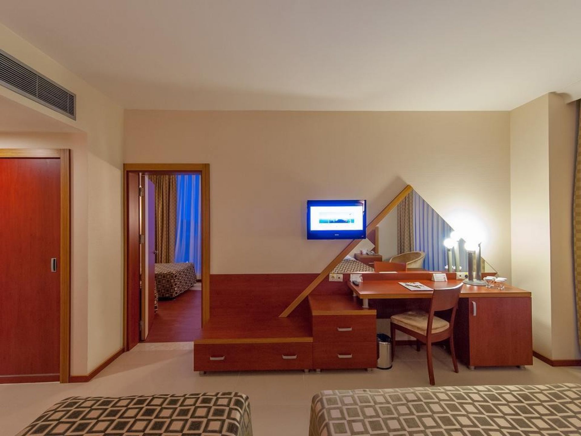 Хотелът разполага с 360 стаи, всички стаи са оборудвани с климатик, телевизор, телефон, баня с душ, сешоар, интернет, сейф, минибар - (ежедневно се зарежда с вода, безалкохолни напитки, бира, шоколад и чипс (безплатно).