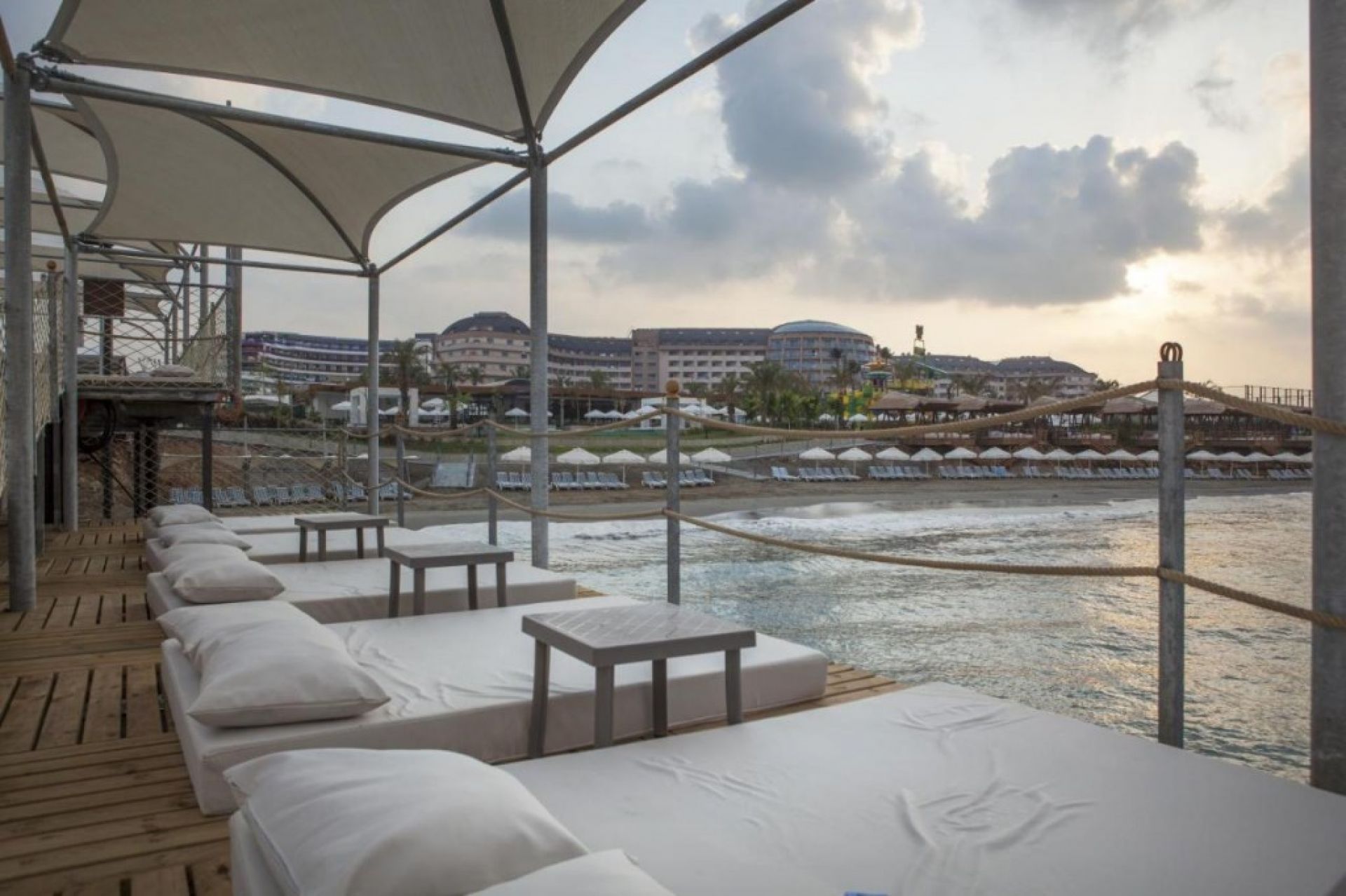 Плаж: Собственият плаж на хотела е 600-метрова пясъчно-чакълеста ивица, която се намира на 50 метра, точно зад пътя, чрез подземен проход. Шезлонги, чадъри и плажни кърпи се предлагат безплатно с карти. Между хотела и плажа има път, но има и подземен проход, който позволява лесен и безопасен достъп до плажа. Плажът е оборудван с кей, а влизането в морето е както по пясък, така и по камъчета. Плажните павилиони се предлагат срещу допълнително заплащане.