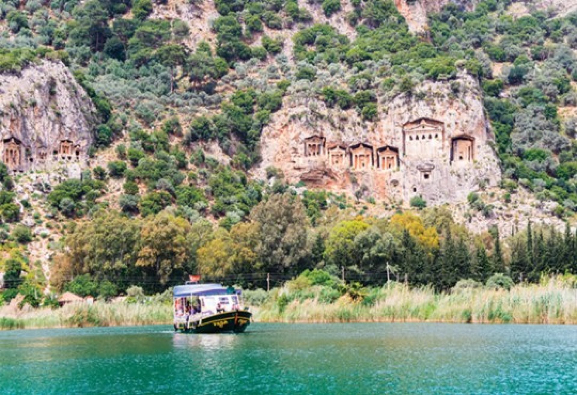 делтата с прясната вода на река Далян и Средиземно море. Това е една от основните територии за отглеждане на големите морски костенурки (Caretta Caretta), пoради което се нарича “Плажа на костенурките”. Над отвесните скали на реката са се запазили фасадите на ликийски гробници, изрязани от скала, около 400 г. пр.н.е. Според митологията Каунос е основан от крал Каунос, син на карийския Крал Милет и внук на Аполон. Каунос имал и сестра близначка на име Библис за легендата на която, ще иамте възможност да се запознаете на място. След пристигане настаняване в хотела. Свободно време. Вечеря. Нощувка.