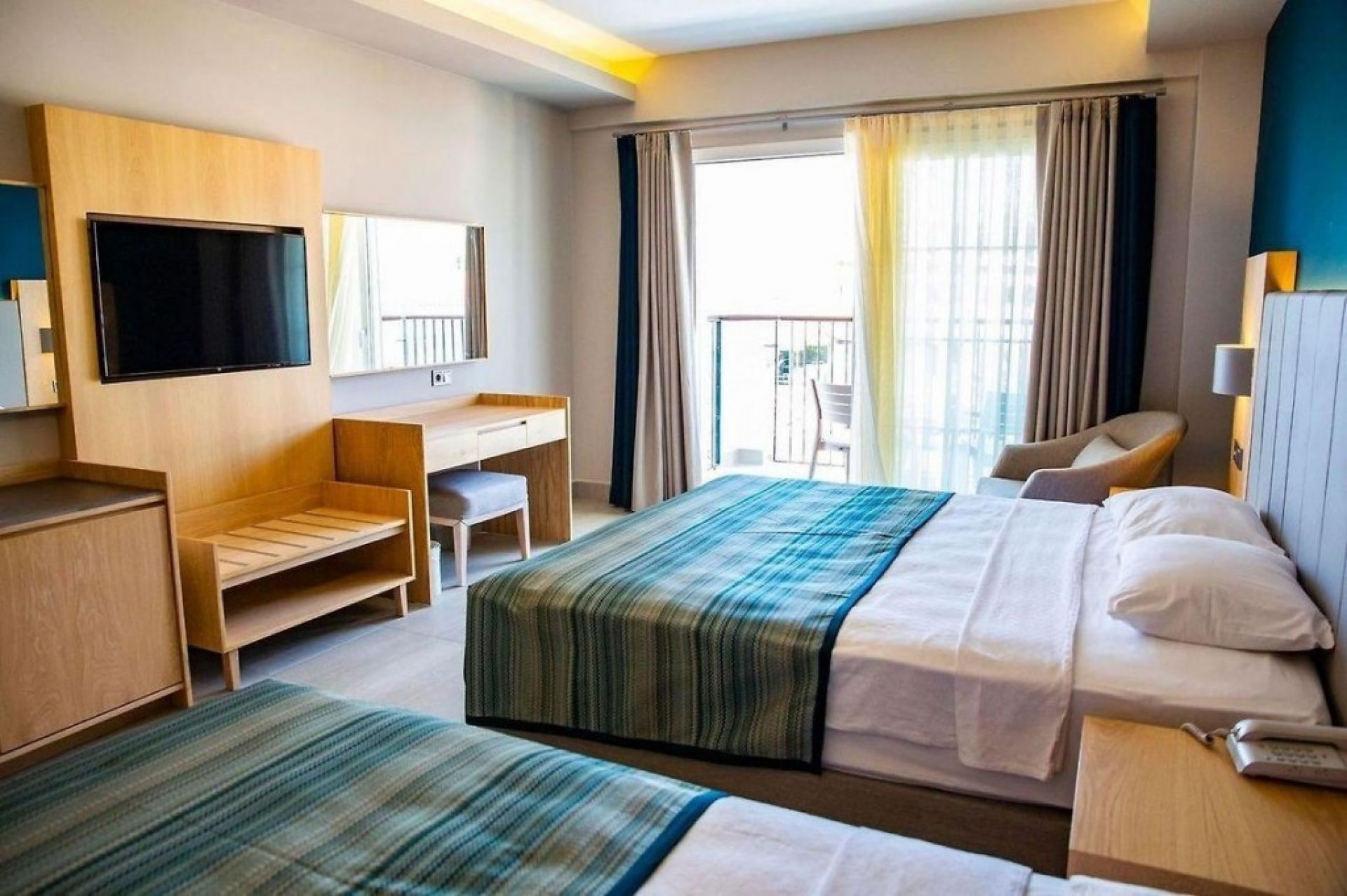 Гостите ще намерят следното в стаята: телевизор, минибар и чехли. Оборудването на стаята зависи от нейната категория.