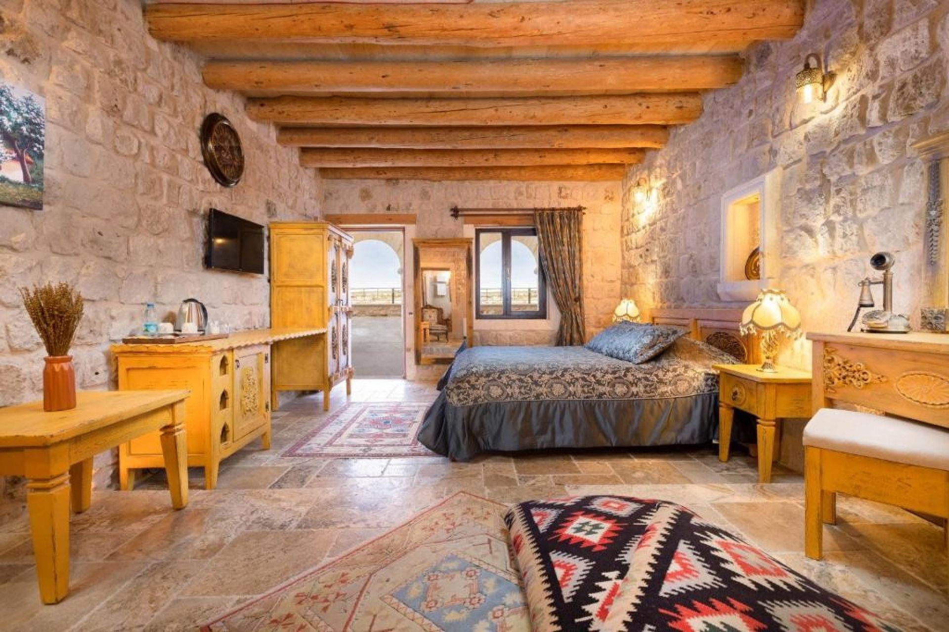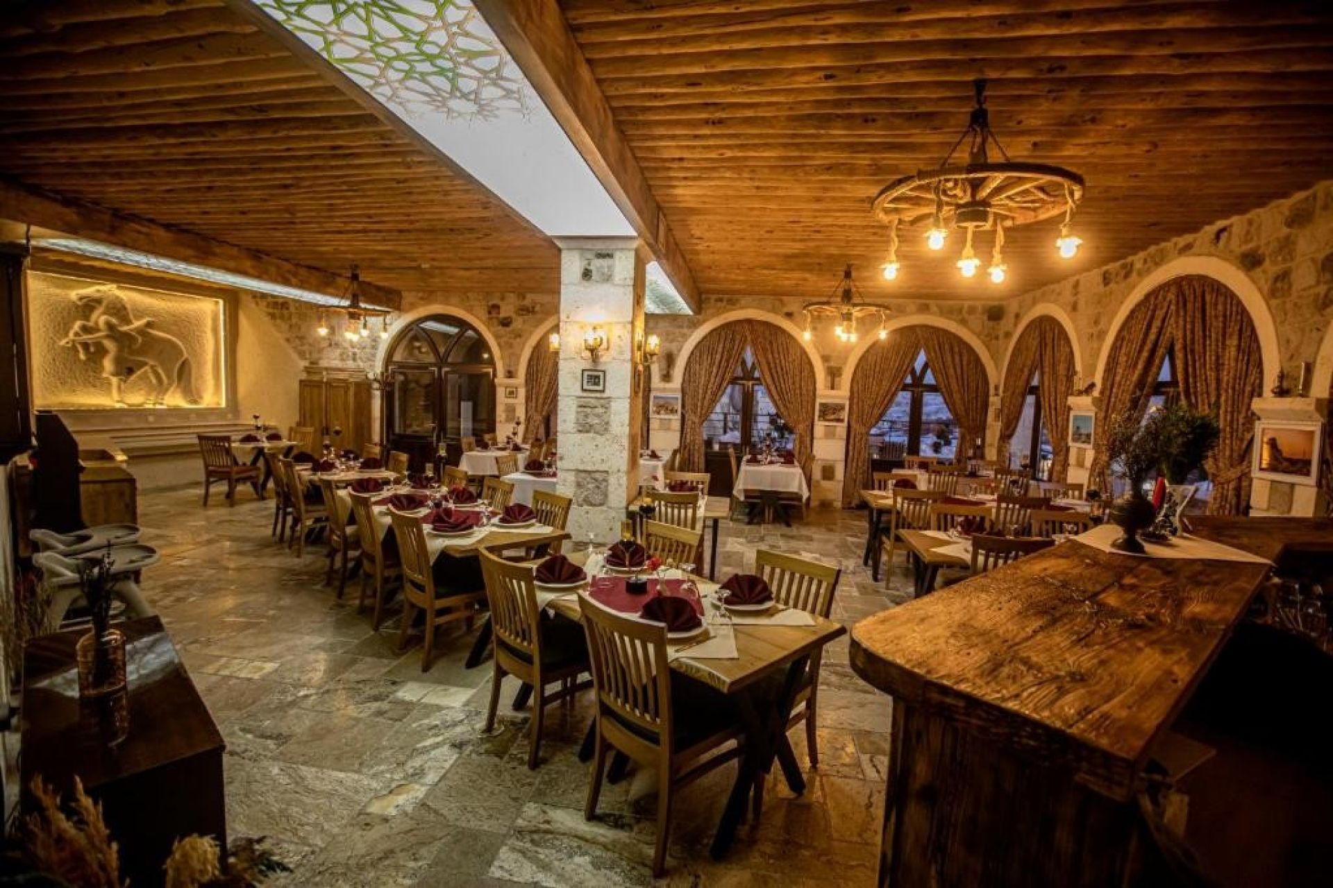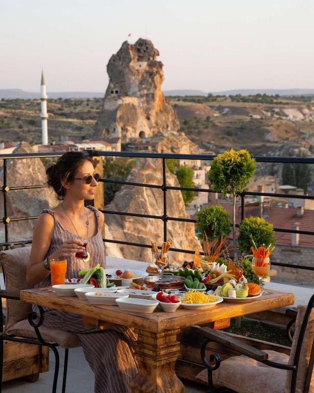 На територията на хотела: Хотелът разполага с 24 часова рецпеция, WiFi, ресторант и бар, в който можете да опитате местните храни в топла и приятна пещерна атмосфера. В ресторанта се приготвят турски и анадолски ястия с местни съставки с традиционните техники за готвене в глинени съдове, които са уникални за Кападокия. Също така можете да видите селекция от вина, произведени от местното грозде, на които да се насладите от откритата тераса на бутиковия хотел.