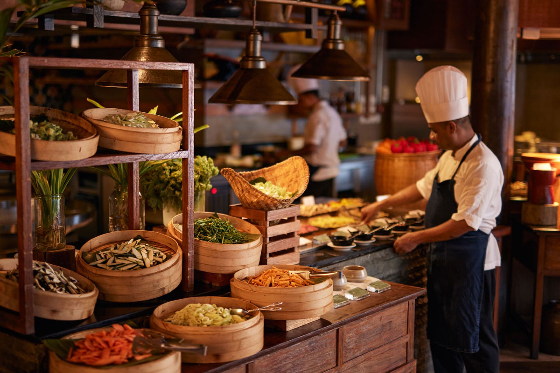 - East Market – основният ресторант на системата "бюфет" с изглед към океана. Има ястия от индонезийска, филипинска, тайландска, виетна, китайска и шриланкска кухня. Отворен за закуска и вечеря.