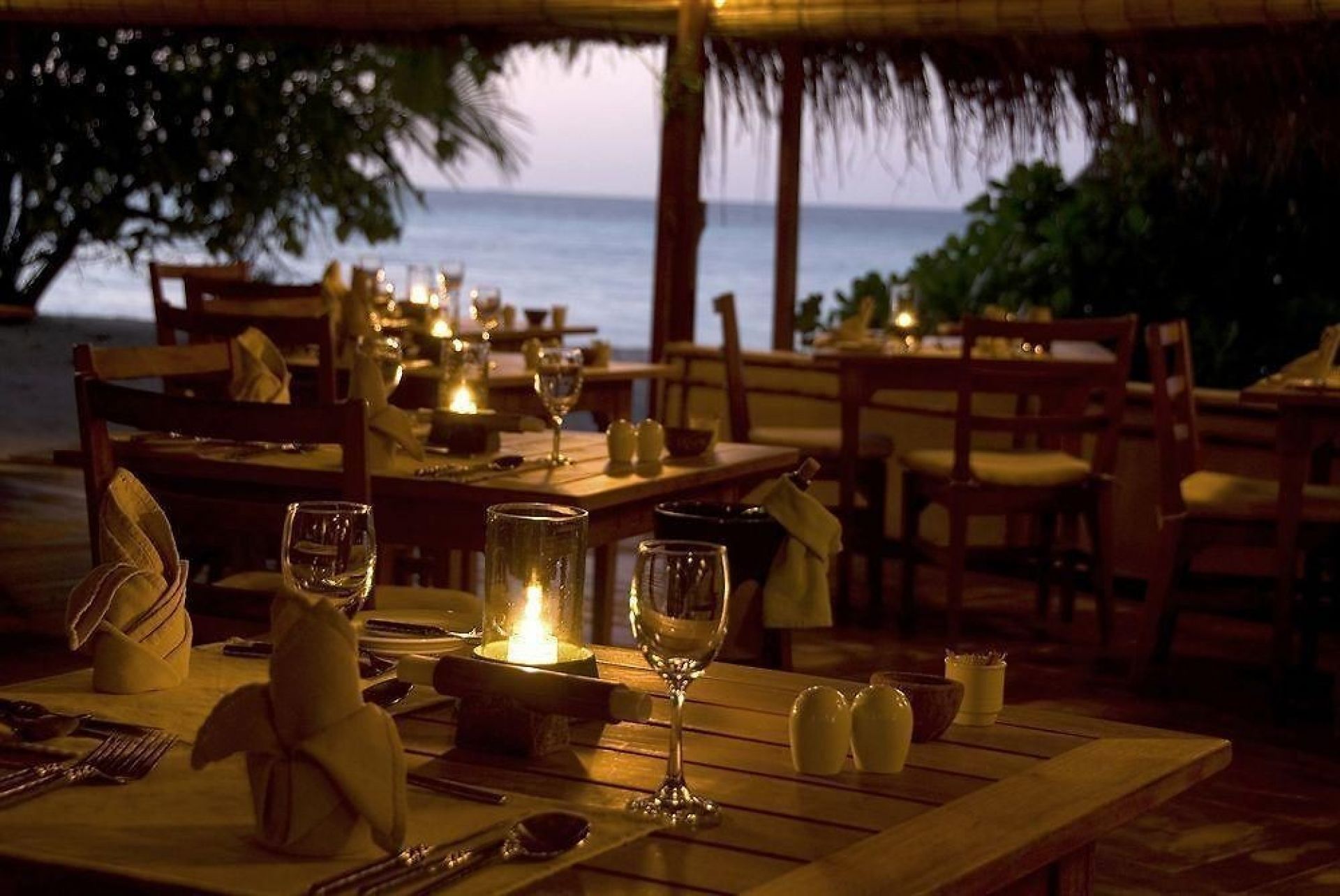 На територията: Ресторант Ara Iru предлага интернационална кухня. Ресторант Iru Fohey е специализиран в ястия с морски дарове и се намира над водата. Ресторантът Malaafath с а-ла-карт меню предлага интернационална кухня. Sand Bar е градински бар с музика на живо и традиционни танци Bodu Beru. Miyaru Bar се намира на плажа. Има и бар „Сънсет“, а през нощта има представления на местни артисти и жива музика.