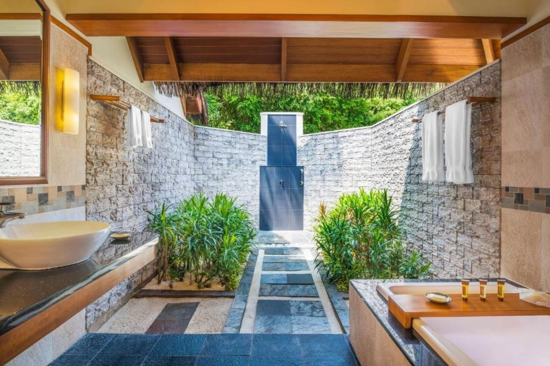 В стаите: Този 5-звезден хотелски комплекс е носител на награди и предлага различни помещения за настаняване: от делукс стаи с градина и очарователни вили тип котидж на плажа до стилни вили над водата. Всички стаи разполагат с - балкон или тераса, климатик, телефон, вентилатор (без стаите Deluxe), интернет: (кабелен, платено; Wi-Fi само в Ocean Pool Villa и Club Water Bungalow, безплатно), сейф, минибар - платено, CD / DVD-плейър (CD в стаите Deluxe и категориите Cottage; DVD-плейър в стаите над водата и Ocean Pool Villa), ТВ, дъска за гладене и ютия, халат, чехли, сешоар, кафемашина (за еспресо само в стаите Water Villa, Water Suite и Ocean Pool Villa), набор за приготвяне на чай / кафе (безплатно), room service: денонощно.