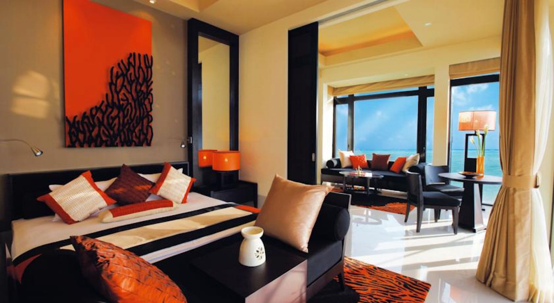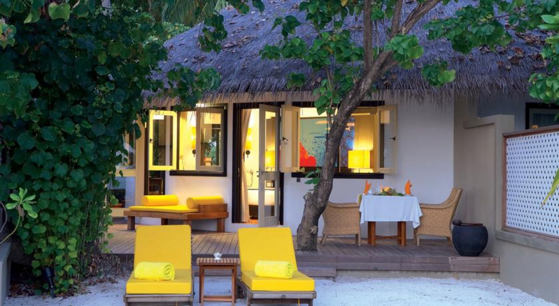 Всички разположени на сушата вили са оборудвани с 32-инчов плоскоекранен телевизор и предлагат безплатен достъп до безжичен интернет. Всички вили над водата се намират до рифовете. Те са просторни и са разположени на 2 етажа, като всяка от тях има собствен басейн. Леглата в стаите са с кралски размери, а в самите стаи ще откриете iPOD докинг станция, мини-бар, машина за чай и кафе, работно бюро, сейф и диван. На разположение са и шезлонги, хамак, басейн и СПА терапии.