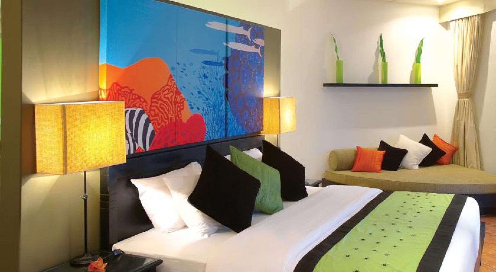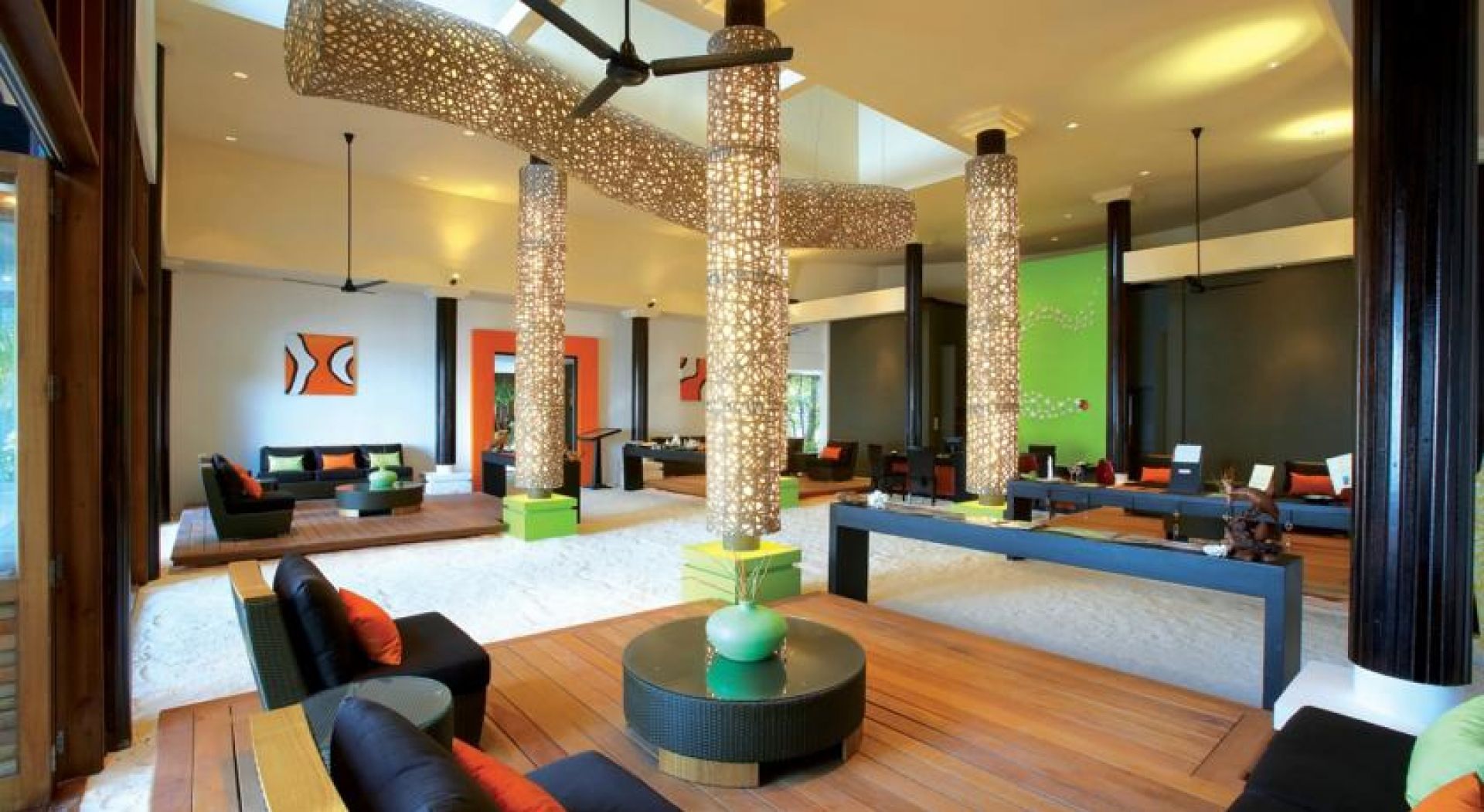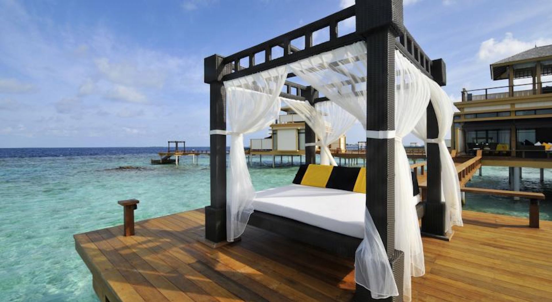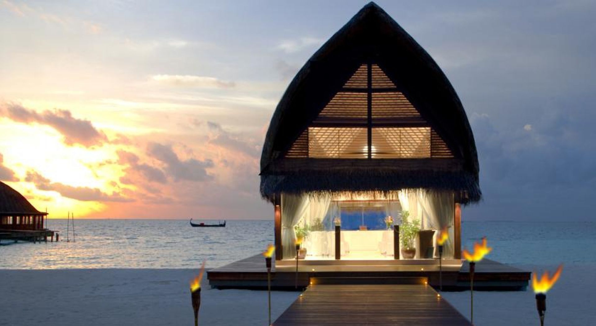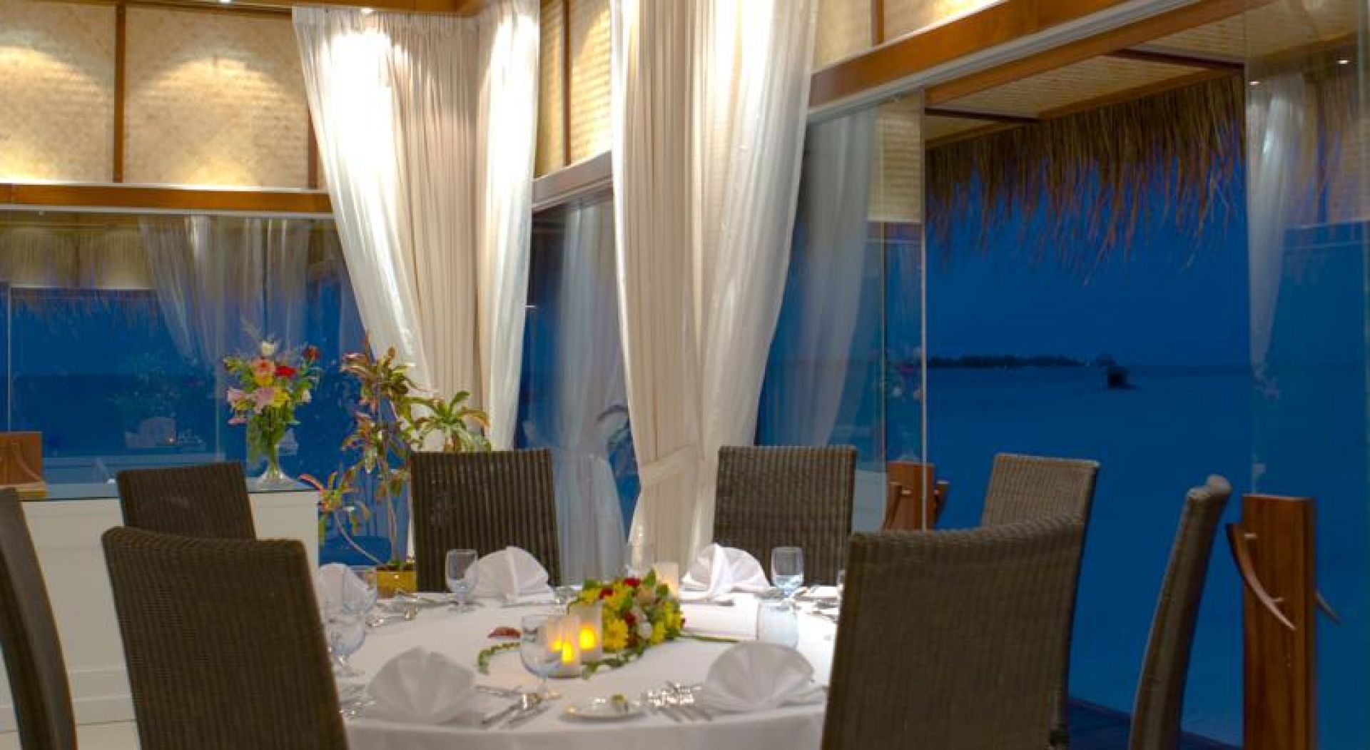 Предлага 5 ресторанта и луксозни самостоятелни вили, разположени край плажа или над водата. Вилите имат самостоятелни басейни.