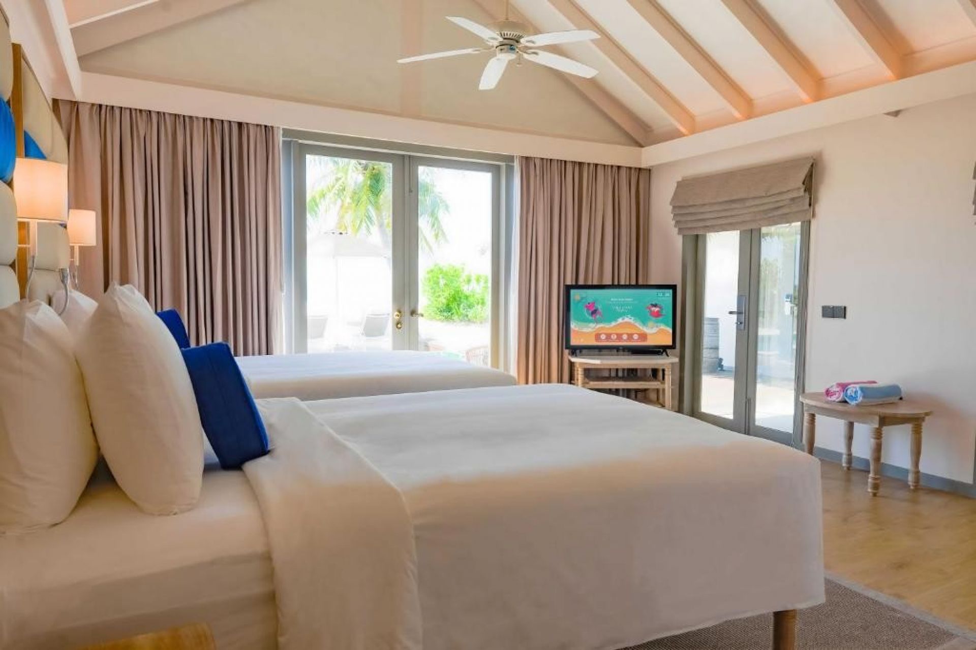 Луксозният хотел предлага настаняване в комфортни вили на остров Маамигили в атола Раа, в северната част на Малдивите.