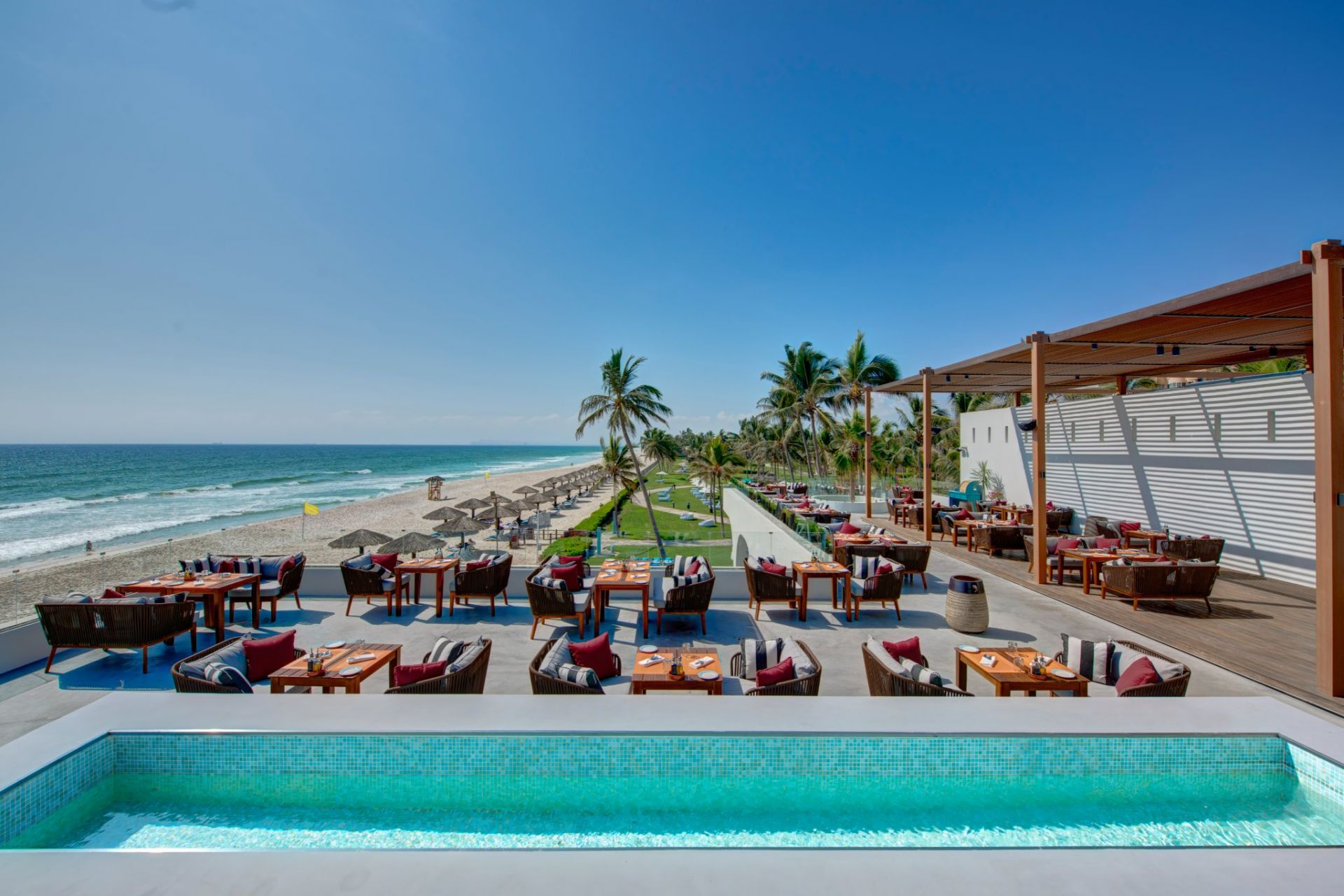 След 19:00 ч. алкохолни напитки ще бъдат налични в бар Khareef до 00:00 ч. Обслужване по стаите (In-Room Dining) ще предлага алкохолни напитки в стаята от 12:00 до 16:00 ч.