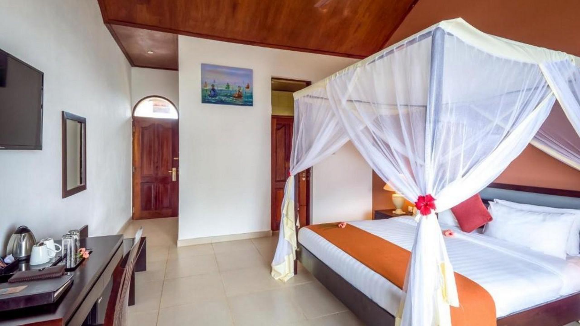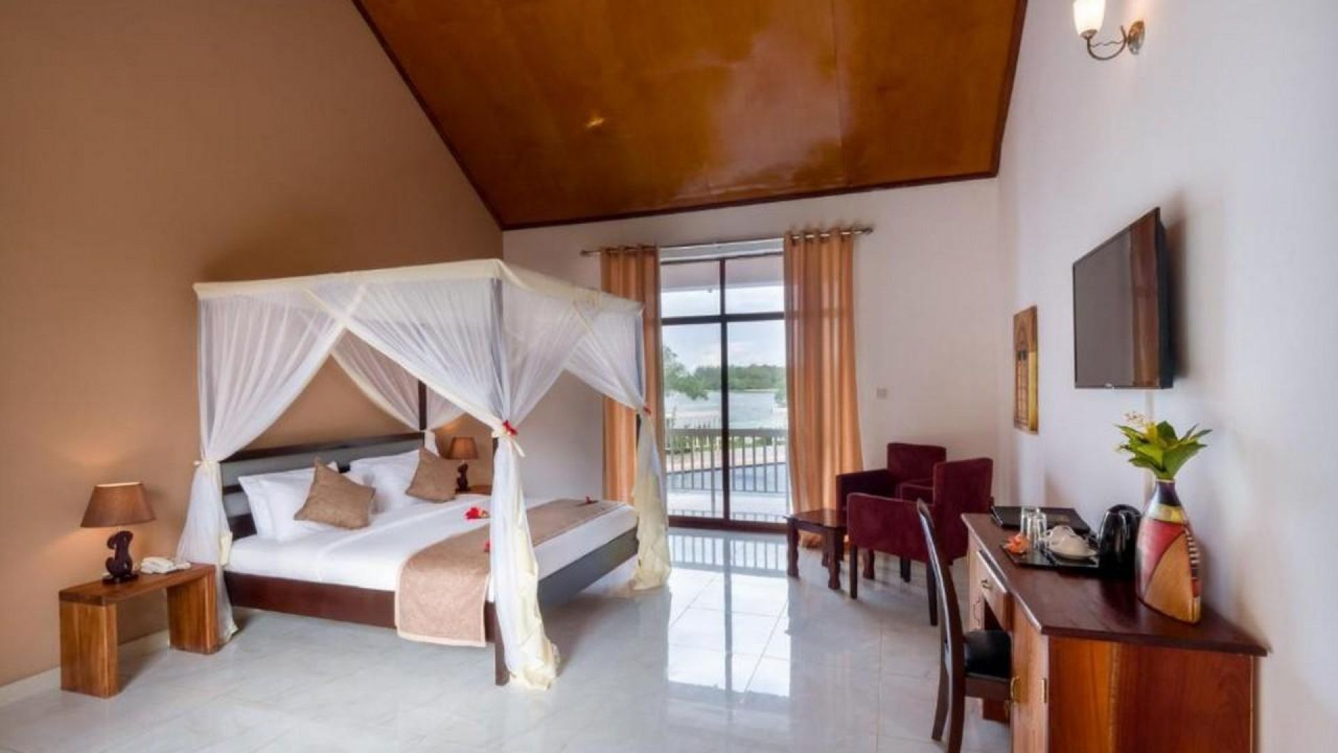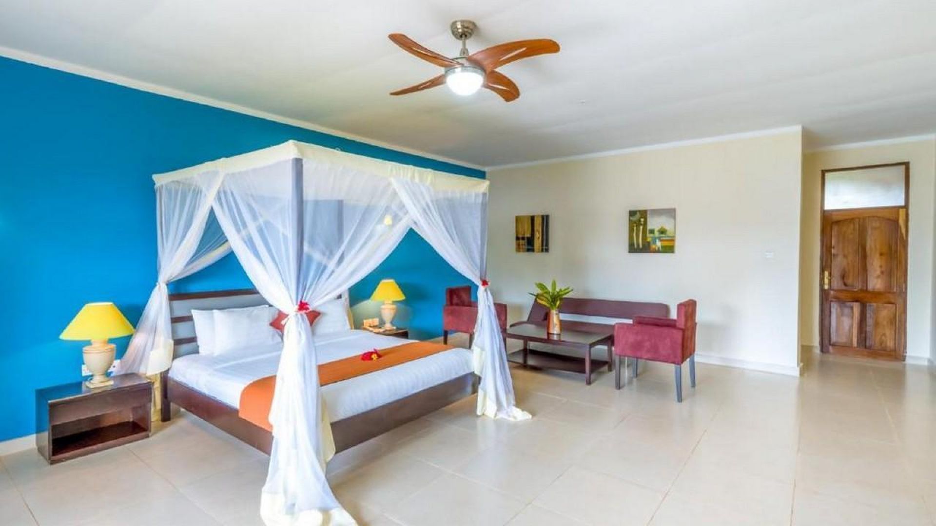 Всяка стая в хотела е климатизирана и снабдена с мрежа против комари. Оборудвана е с кът за сядане, телевизор с плосък екран със сателитни канали. Стаите са със собствена баня с душ. Някои от тях имат балкон и гледка към морето.