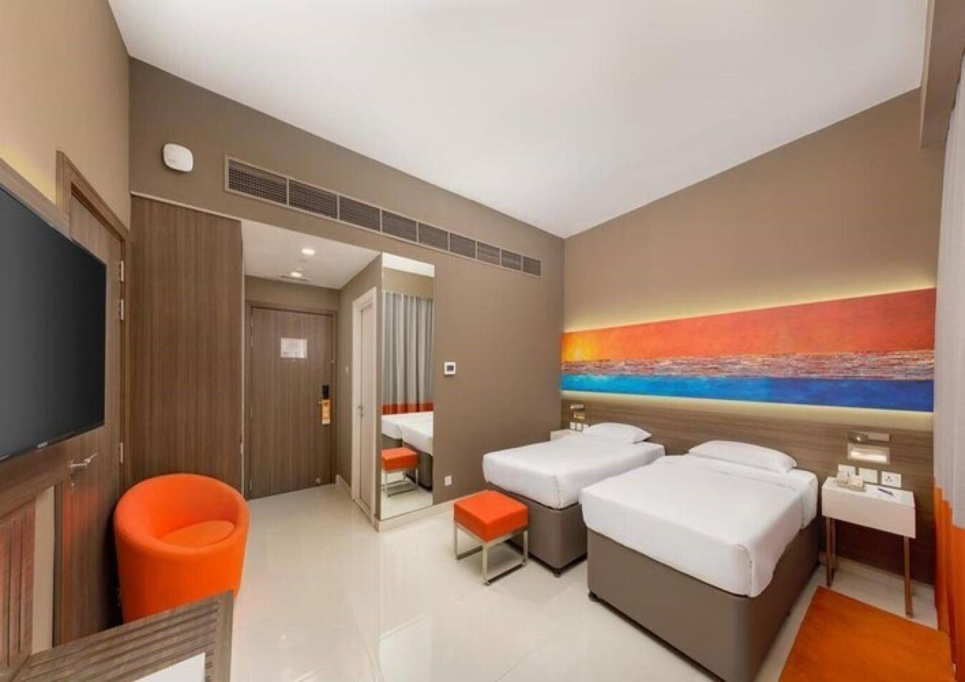 В стаите: Хотелската стая разполага с климатик, сешоар, удобства за приготвяне на чай и кафе, кана, хладилник, сейф, телефон, телевизор и безплатен Wi-Fi.
