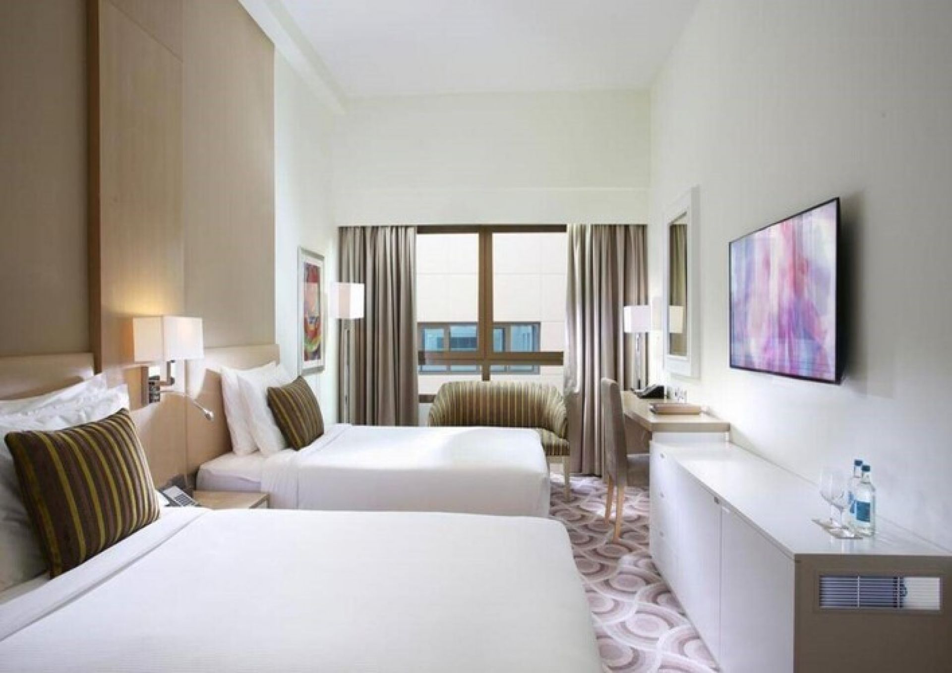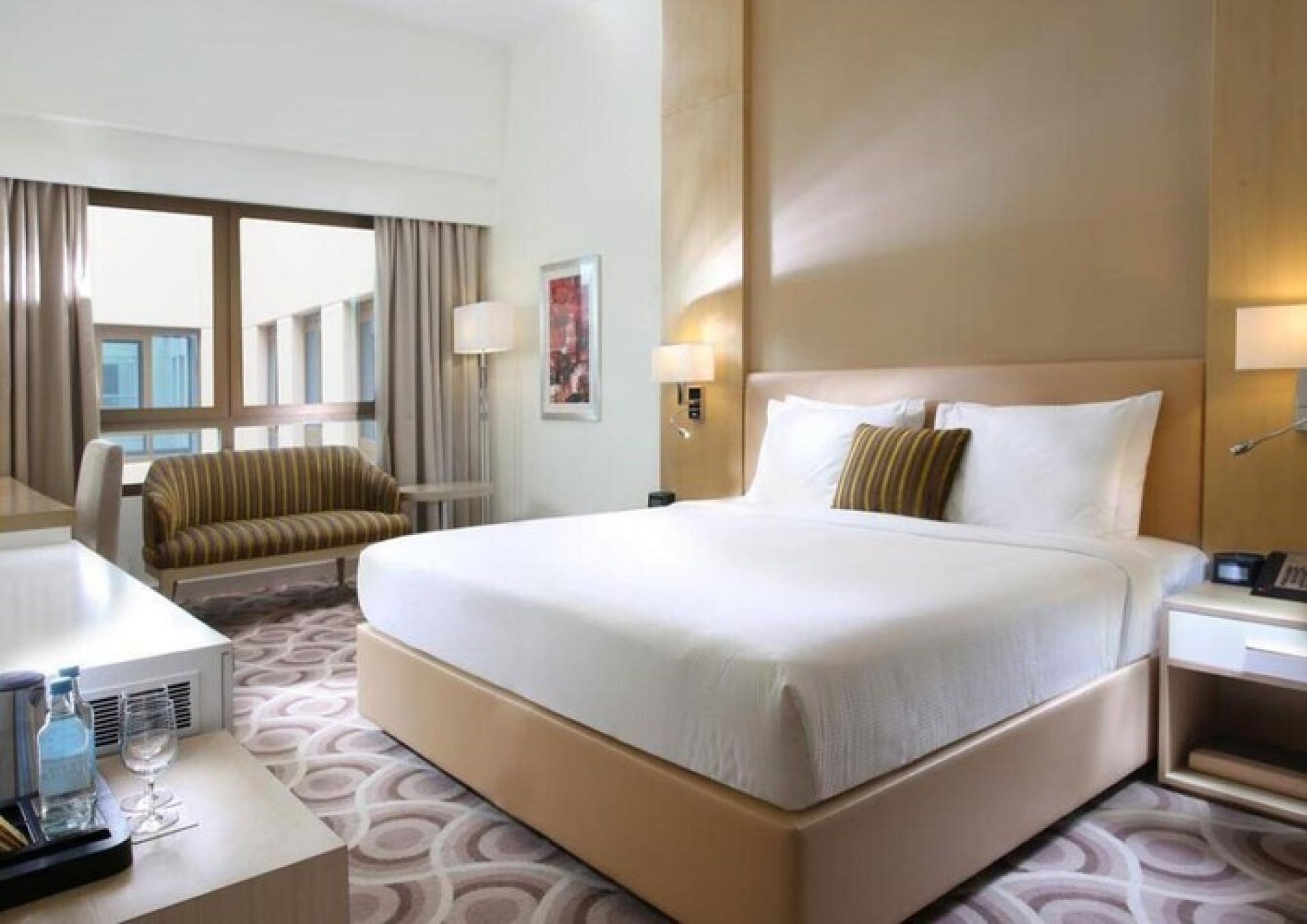 В стаите: Стаята разполага с телевизор, сателитна телевизия, минибар с безплатна вода, сейф, телефон, душ, сешоар, безплатен Wi-Fi, климатик, халати и чехли, както и ютия с дъска за гладене, които се предоставят при поискване. Освен това стаята разполага с комплект за приготвяне на чай и кафе.