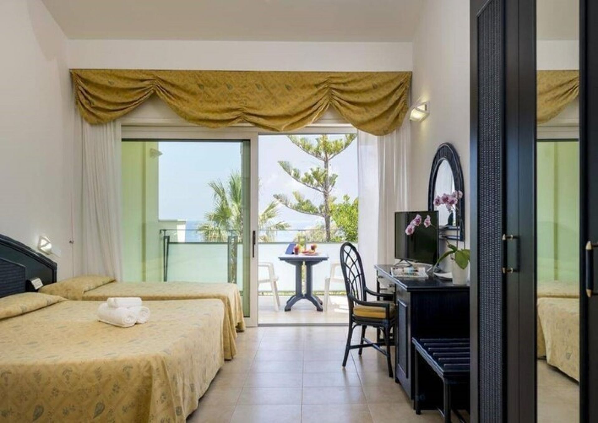В стаите: Стаята разполага с телевизор, мини хладилник, сейф, телефон, душ, сешоар, климатик и тераса.