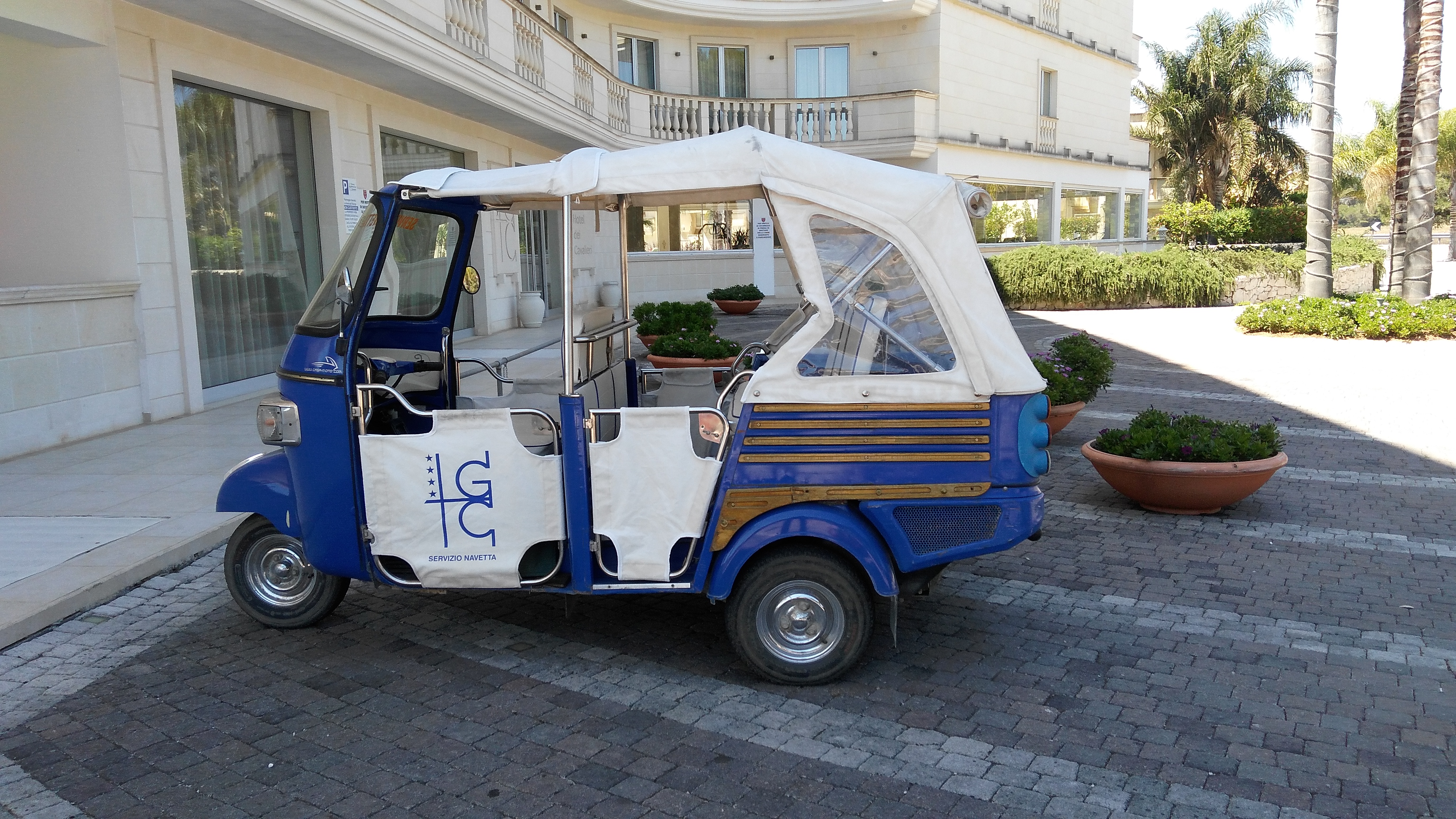 Хотел "Grand Hotel dei Cavalieri" 4* е разположен в западната част на тока на италианския ботуш, в курортното селище Кампомарино ди Маруджо – един от известните морски курорти в района на Таранто, на около 15 км от град Мандурия, познат с изключителното си вино "Примитиво ди Мандурия" и на около 40 км от центъра на историческия град Таранто. Летището в Бари отстои на около 150 км. Местоположението му е много благоприятно за опознаване на някои от най-атрактивните забележителности в регион Пулия. В близост до хотела има спирка на автобус до Таранто (цена: около 3 EUR в посока). От центъра на Кампомарино ди Маруджо могат да се хванат автобуси до Мандурия и Маруджо. В рамките на 1,8 км от хотела има ресторанти, пицарии, кафенета, барове, супермаркет, магазини, фризьор.