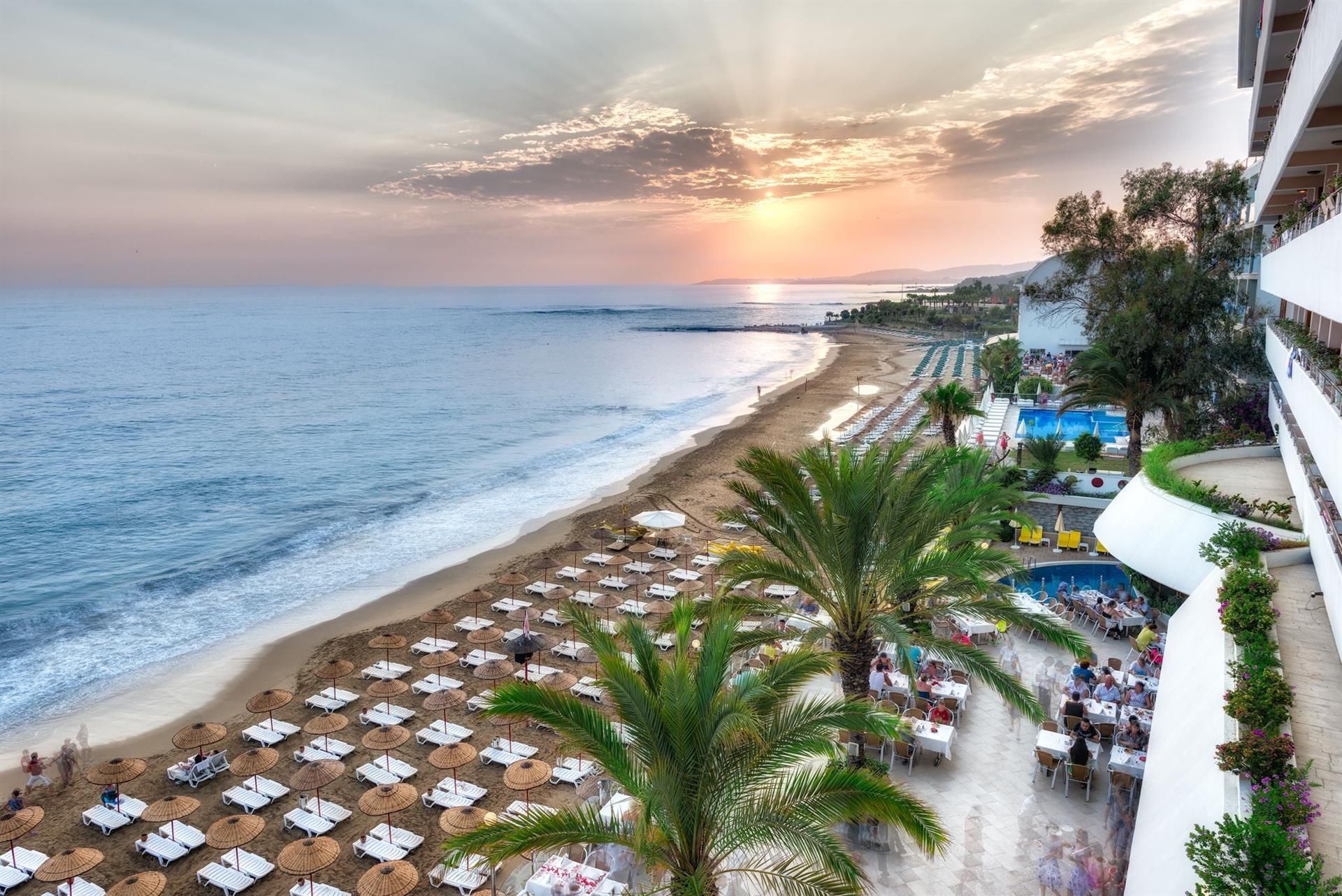 Хотелът е разположен на самия плаж, в района на Алания, на 22 км. от Алания, на 35км. от Сиде, на 95км. от летище Анталия.