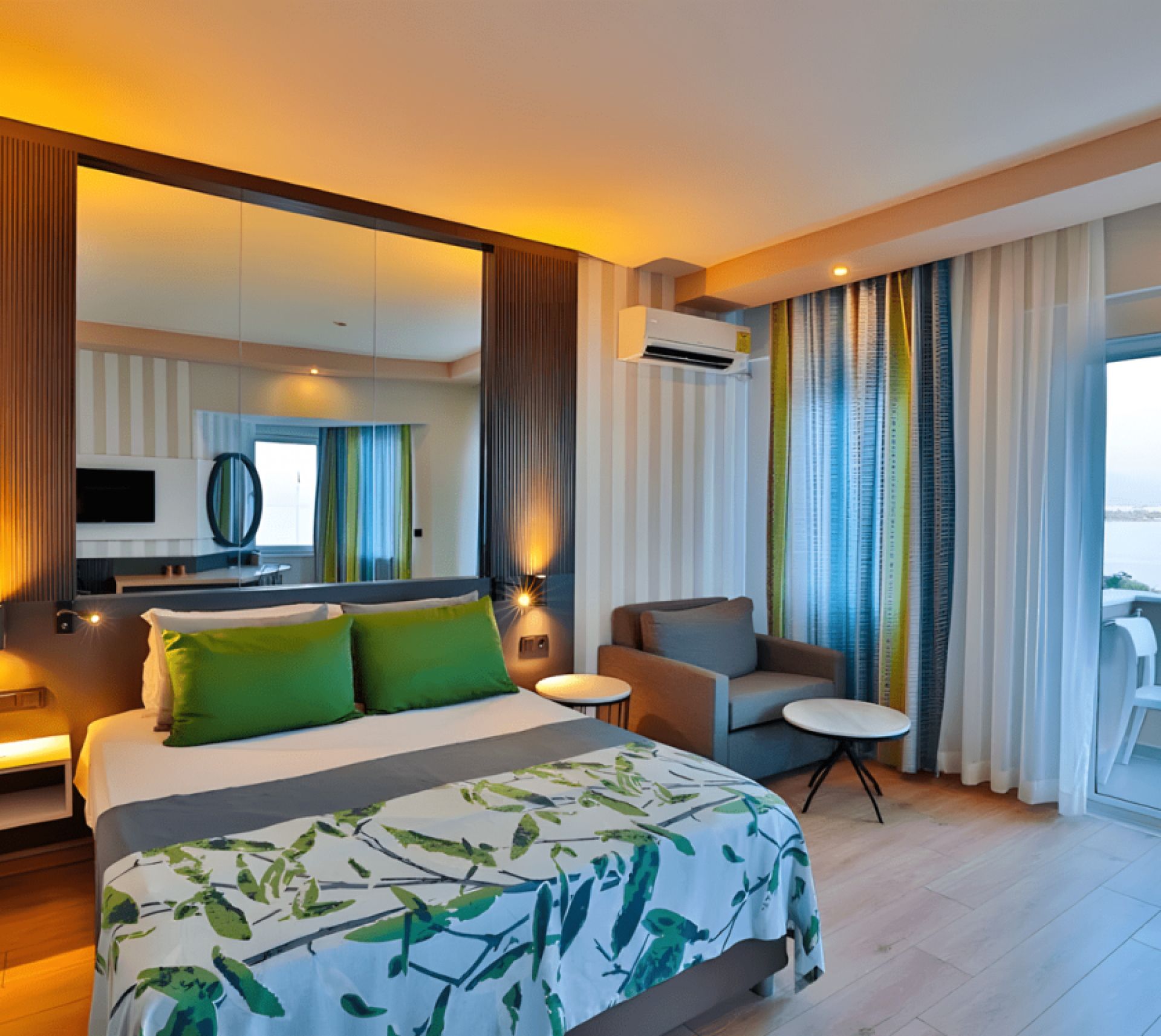 Всички стаи са оборудвани с климатик, телевизор, телефон, баня с душ, сешоар, сет за чай/кафе, минибар (безплатен), сейф (безплатен), балкон.
