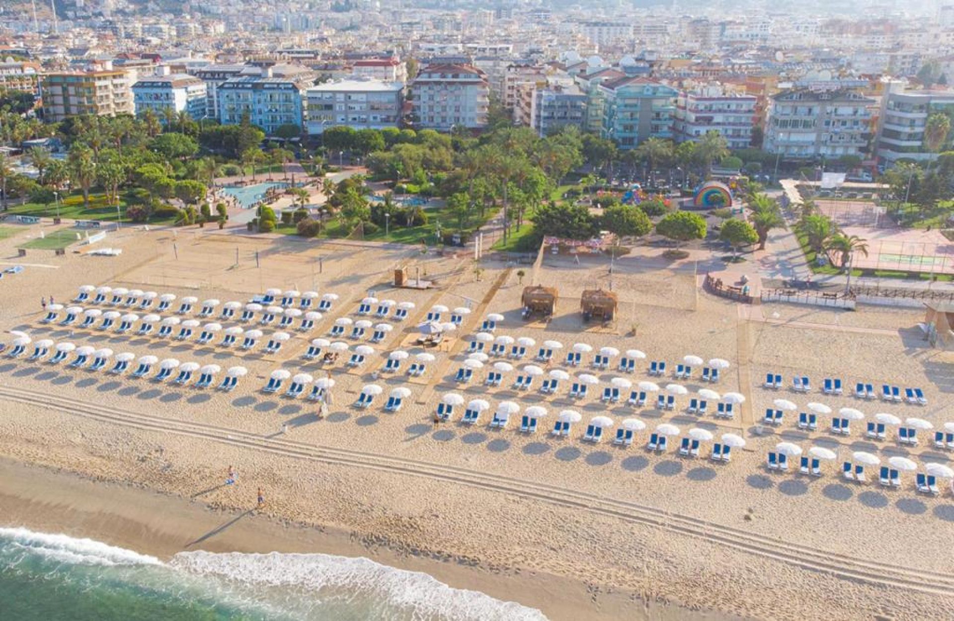 Градски, на 2 км от хотела, пясъчен. Безплатен шатъл до плажа (в определен часови диапазон). Чадъри и шезлонги при басейна – безплатно, на плажа – срещу заплащане.