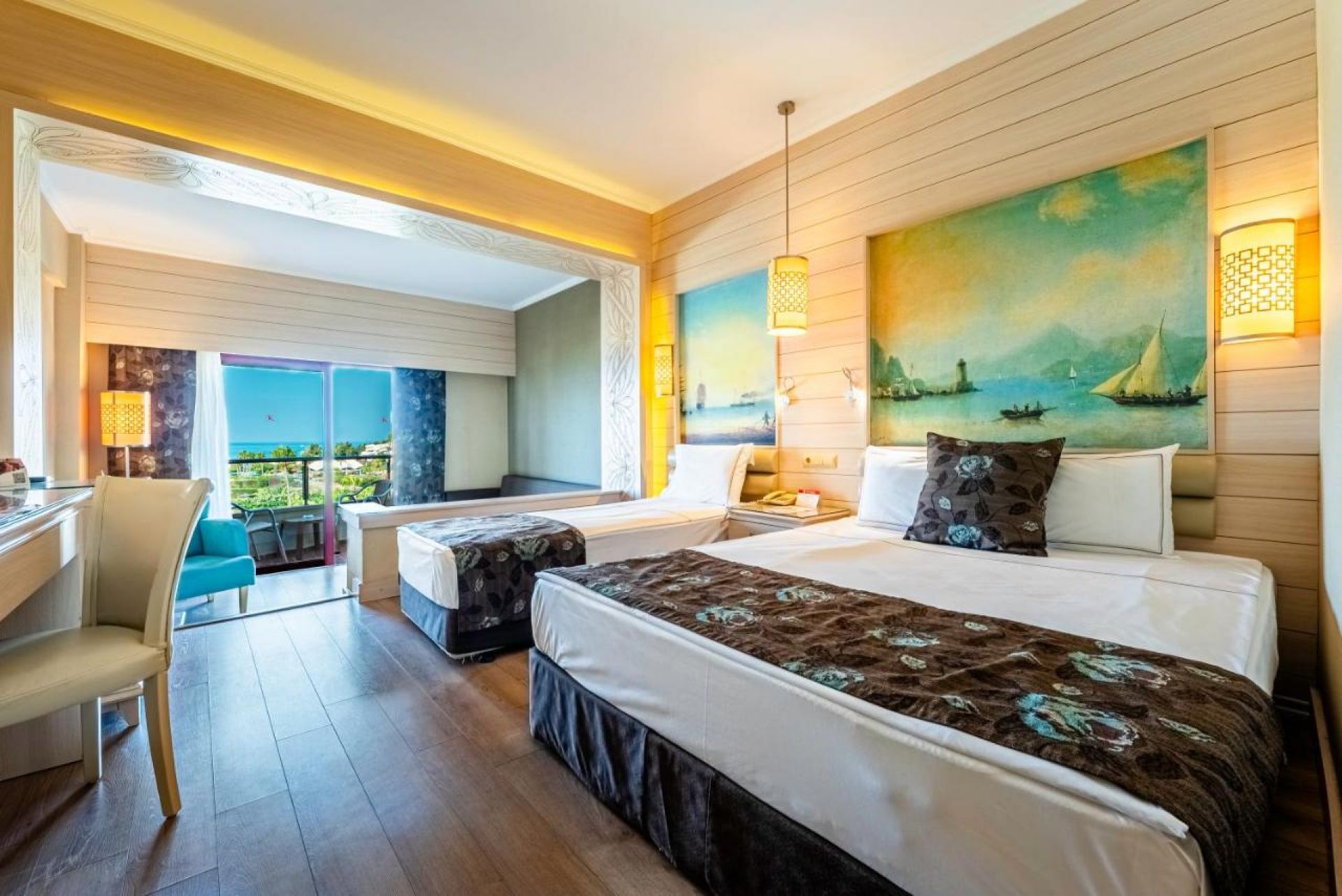 Основен ресторант, 4 a - лa - карт ресторанта (едно безплатно посещение с предварителна резервация по време на престоя), 4 бара, магазини, безплатен интернет в лобито на хотела, открит басейн, закрит басейн, аква парк, 5 водни пързалки.