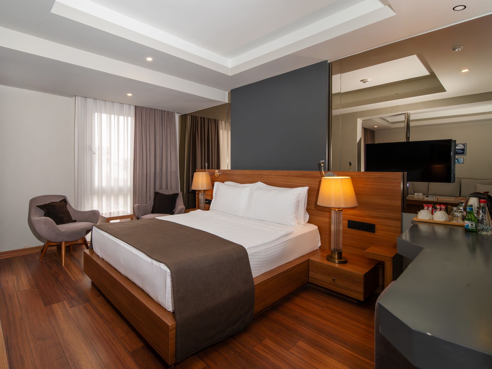 Всички стаи са оборудвани с климатик, телевизор, телефон, баня с душ, сешоар, минибар (безплатен), сейф (безплатен).