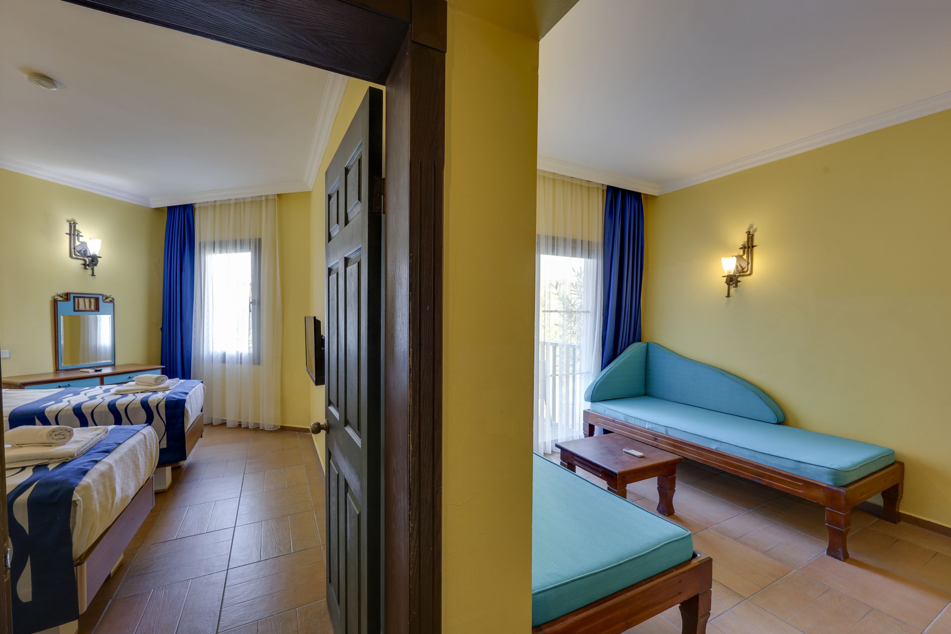 Хотелът разполага с общо 274 стаи, разположени в 3-етажни сгради, от които 33 Club room (нереновирани стаи - 26 м²),178 Hotel room (реновирани стаи, разположени в основен корпус или в триетажни сгради - 26 м²), 28 Club family room (нереновирани стаи, 2 спални, 1 баня - 45 м²) , 35 Family hotel room (реновирани стаи, 2 спални, 1 баня - 45 м²), Disabled Room (пригодени за хора с ограничена подвижност - 26 м²).