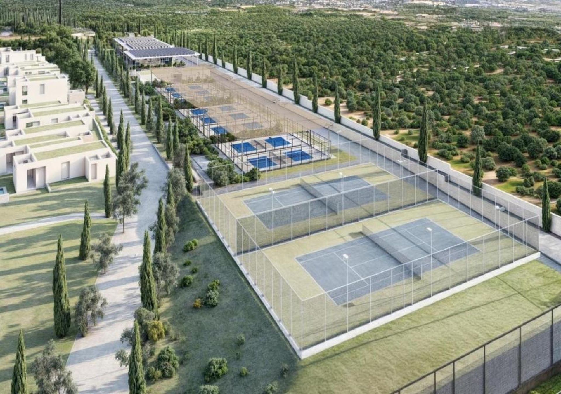 - Падел: 4 стандартни корта + 1 панорамен Mac корт