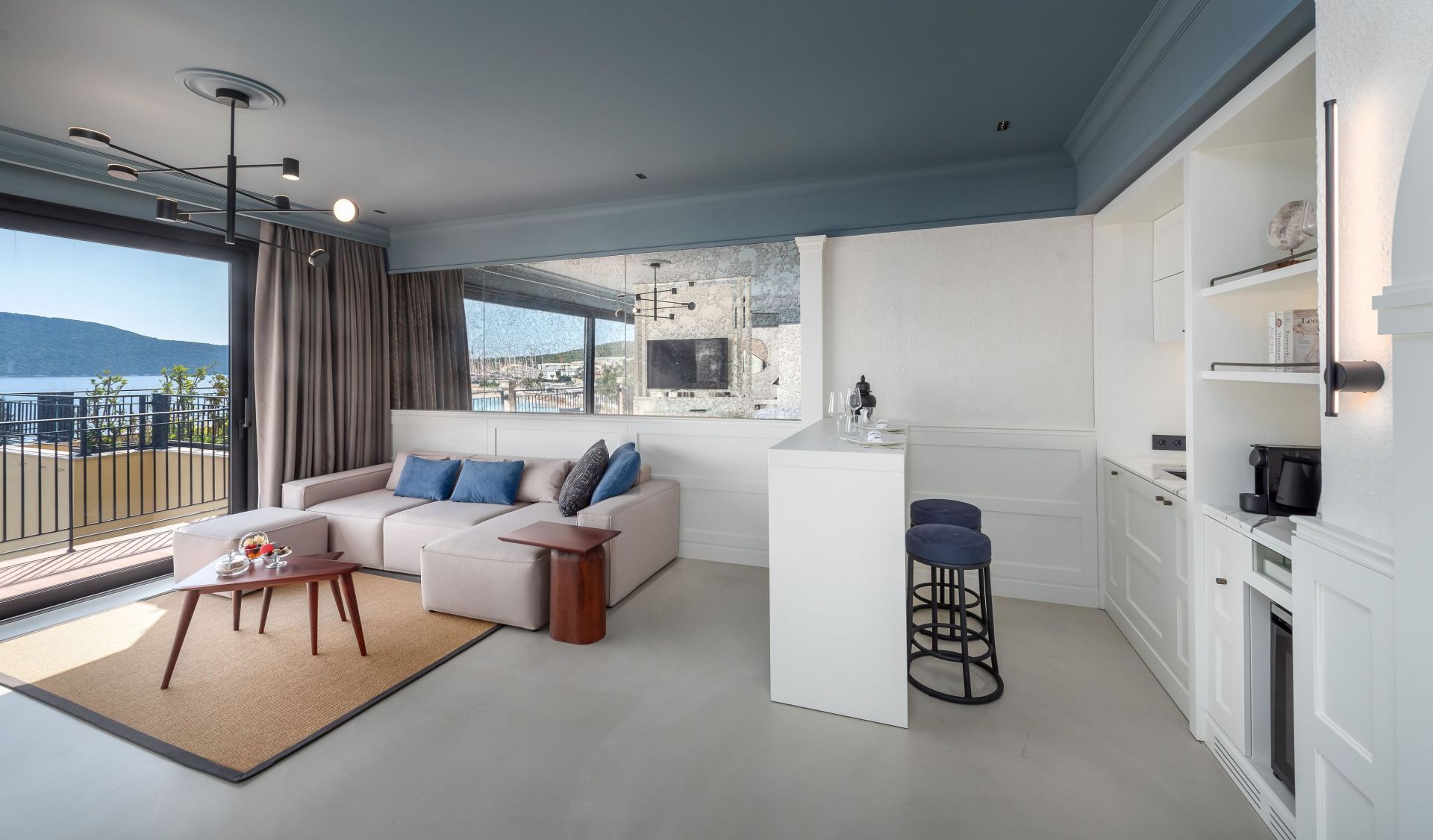 Намира се на 40 км от летище Бодрум, на 6 км от центъра на Бодрум, в района на Ичмелер, на брега на морето. Построен 2022 г., на обща площ от 5 000 М². Реновиран 2026 г.