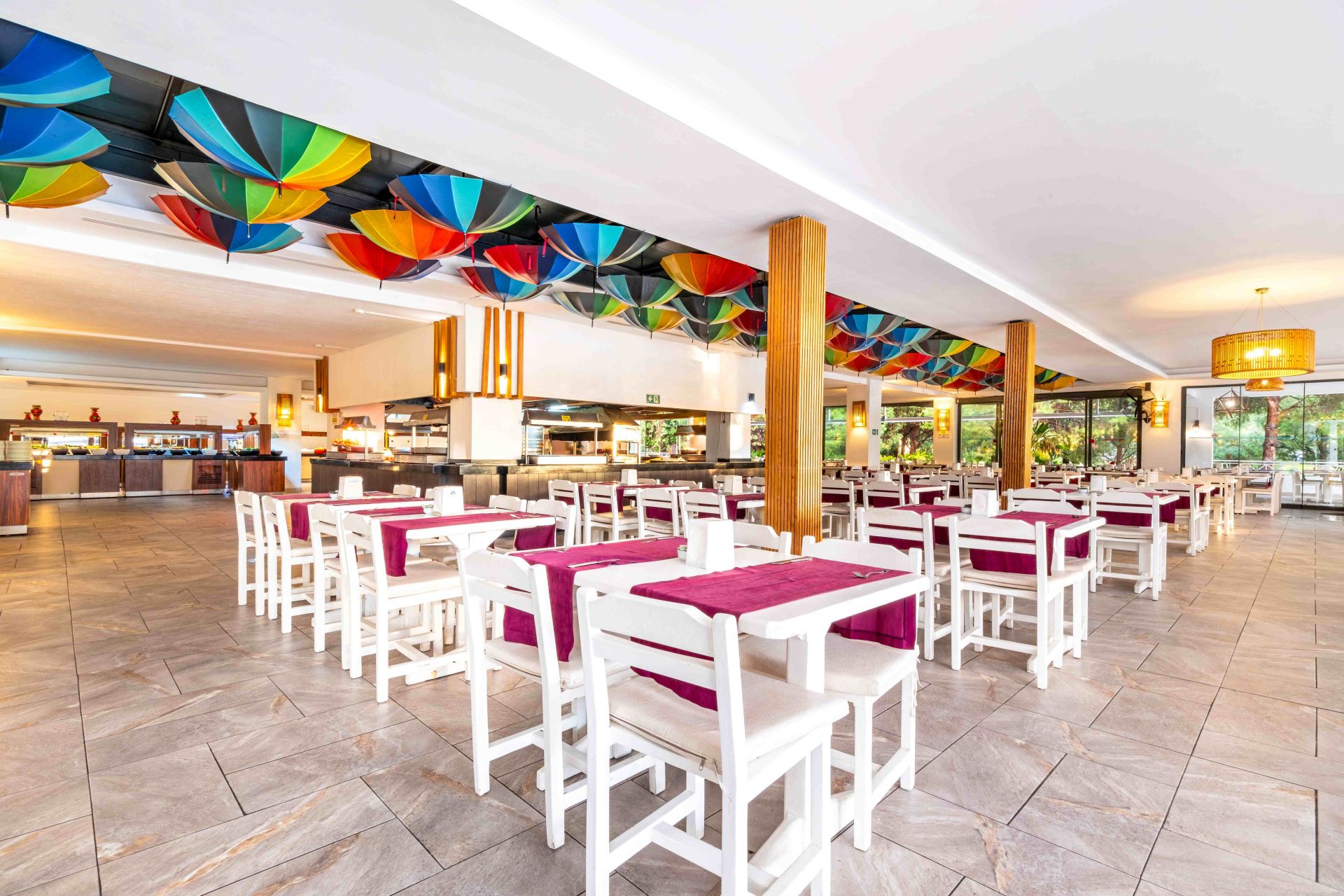 Основен ресторант, а - ла - карт ресторант (платен), 3 бара, открит основен басейн , релакс басейн, СПА център, магазини, паркинг.