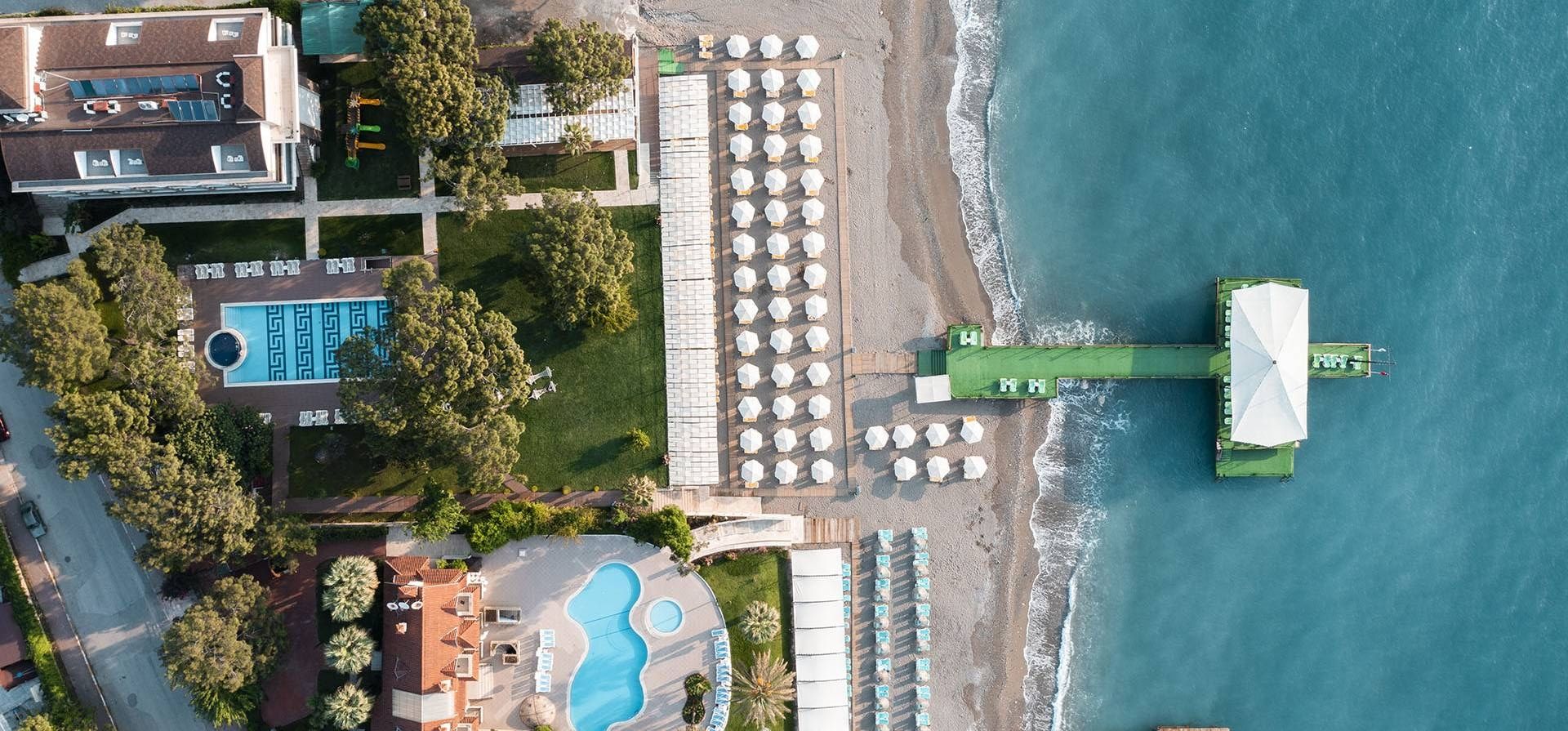 Намира се на 45 км от летище Анталия, на 35 км от центъра на Анталия, на 10 км от центъра на Кемер, на 50 м. от брега на морето (през път). Построен 2017 г., на обща площ от 30 000 м2.