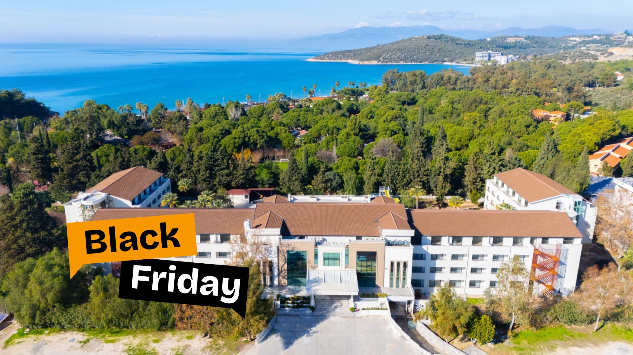 Намира се на 65 km от летище Измир, на 124 км от летище Милас, на 5 км. от центъра на Кушадасъ, на 250 м. от брега на морето. Построен на обща площ от 12 500 кв.м.