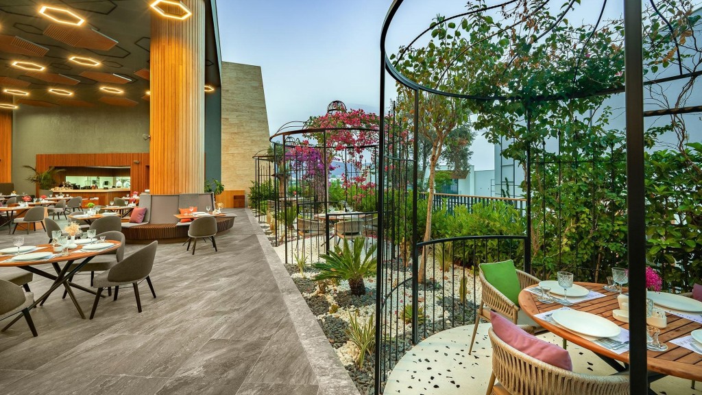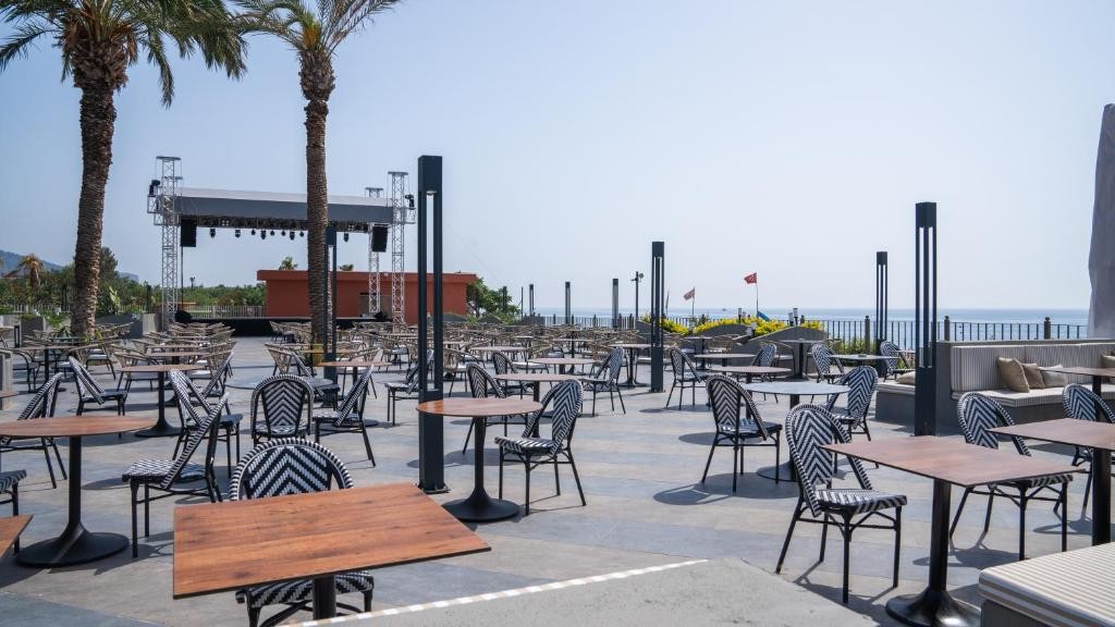 На територията на хотела: Основен ресторант – с детски бюфет и диетична кухня, 24 часов ресторант с бар – „Gusto“ с а ла карт меню – без резервация, 3 а ла карт ресторанта - италиански, турски и рибен (с предварителна резервация и веднъж безплатно използване на един от тях за седмичен престой), сладкарница, два снек ресторанта, 5 бара, дискотека, открит и закрит басейн, басейн с пързалки за възрастни, СПА център, магазини, паркинг.