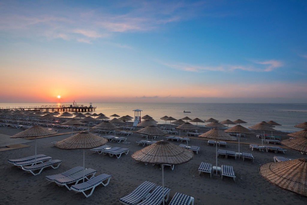 Плаж: Собствен пред хотела. Чадъри, шезлонги и кърпи са на разположение на плажа и басейните. Плажът е смесен пясък и камъчета с дължина 235 м. Има 1 частен кей и бар на плажа.