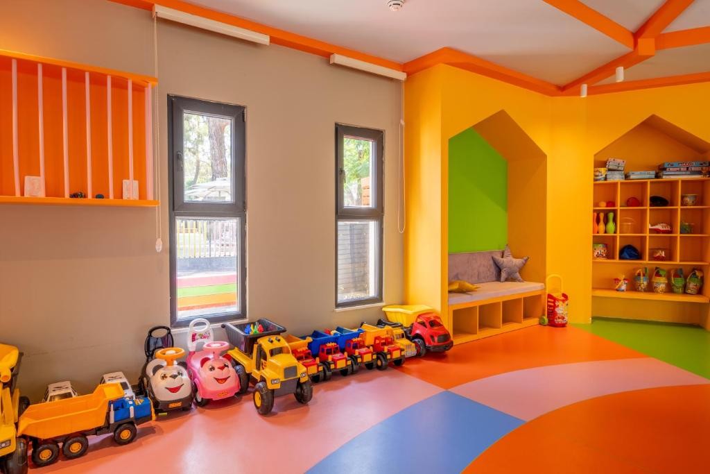 За децата: Детско меню, открит детски басейн, вътрешен детски басейн, водни пързалки, детска площадка, мини дискотека, детско кино, бебешко креватче, бебешки столчета, бебефон и други бебешки приспособления/със предварителна заявка - безплатно/, мини клуб (от 4-7,99 г. и от 8 – 12,99 г.)