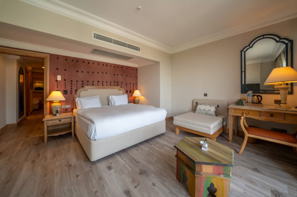Стаи: Хотелът се състоиу от няколко 4 до 7 етажни основни сгради и разполага с общп 391 стаи в няколко различни категории. Предлага се система с карта-ключ, козметични продукти: шампоан, балсам, душ гел, лосион за тяло, течен сапун, шапка за душ, кутия за кърпички, клечки за уши и тампони за премахване на грим, меню с възглавници (3 вида). Комплект за деца/бебе: шампоан, душ гел и течен сапун. Ежедневно зареждане на минибара (вода, Кока-Кола, Фанта, Спрайт, бира (Ефес), мляко, газирана вода, плодов сок), кърпа, чехли, сешоар, цифров сейф, LCD/сателитен телевизор, сет за кафе и чай, балкон, интернет. Почистване на стаите- всеки ден, смяна на бельото и кърпите- 3 пъти в седмицата.