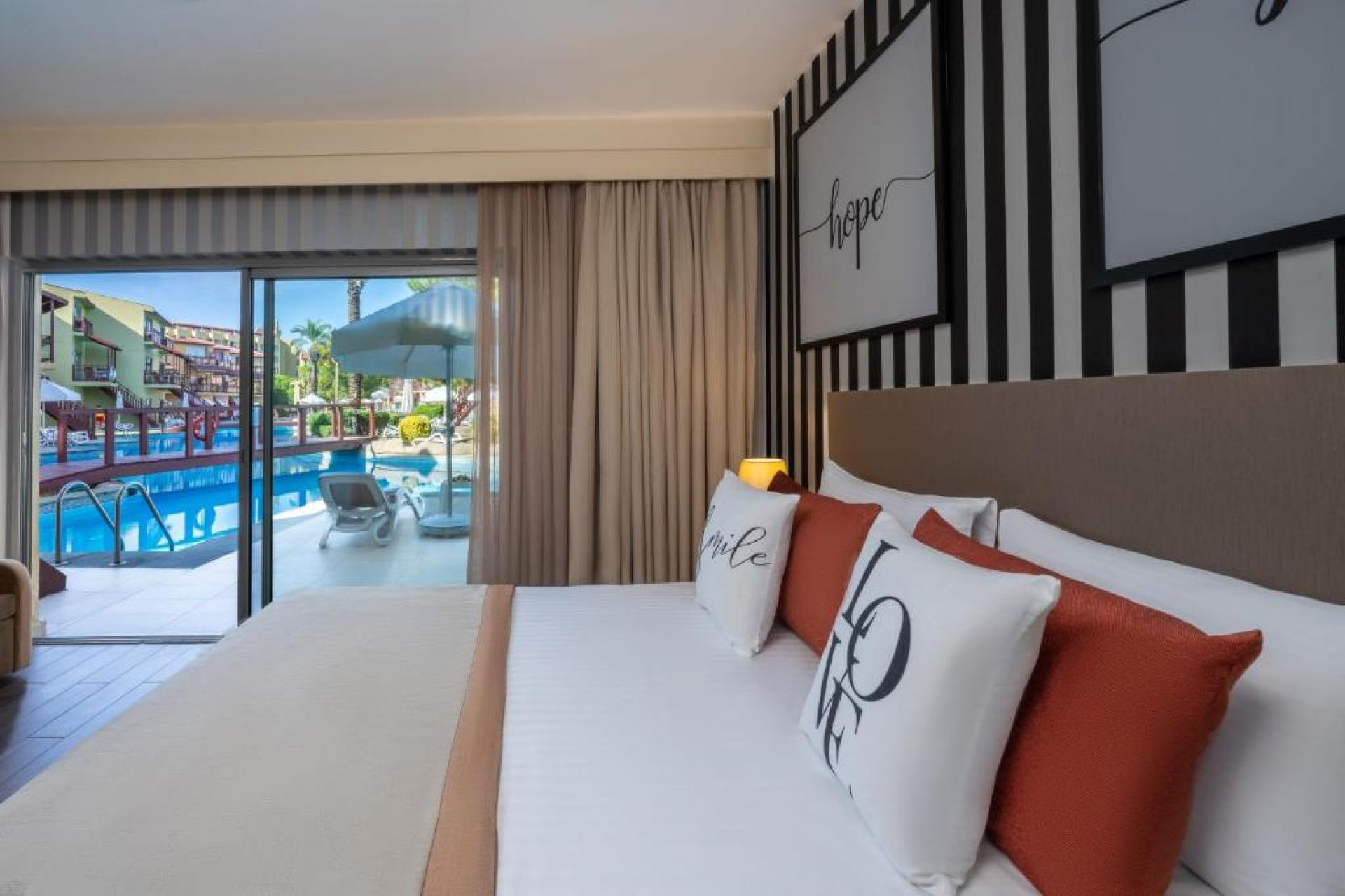 Стаи Aqua Building: 105 Aqua Room (изглед градина или басейн, 27 м2), 17 Aqua Family Room (2 спални, изглед градина или басейн - 45 м2).
