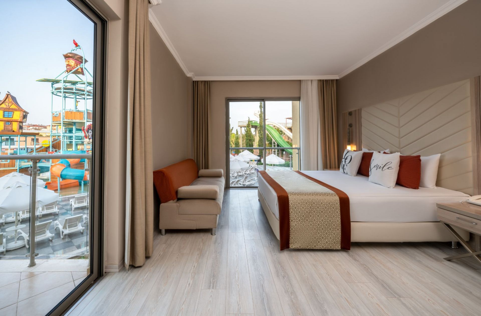 Стаи Aqua Building: 105 Aqua Room (изглед градина или басейн, 27 м2), 17 Aqua Family Room (2 спални, изглед градина или басейн - 45 м2).