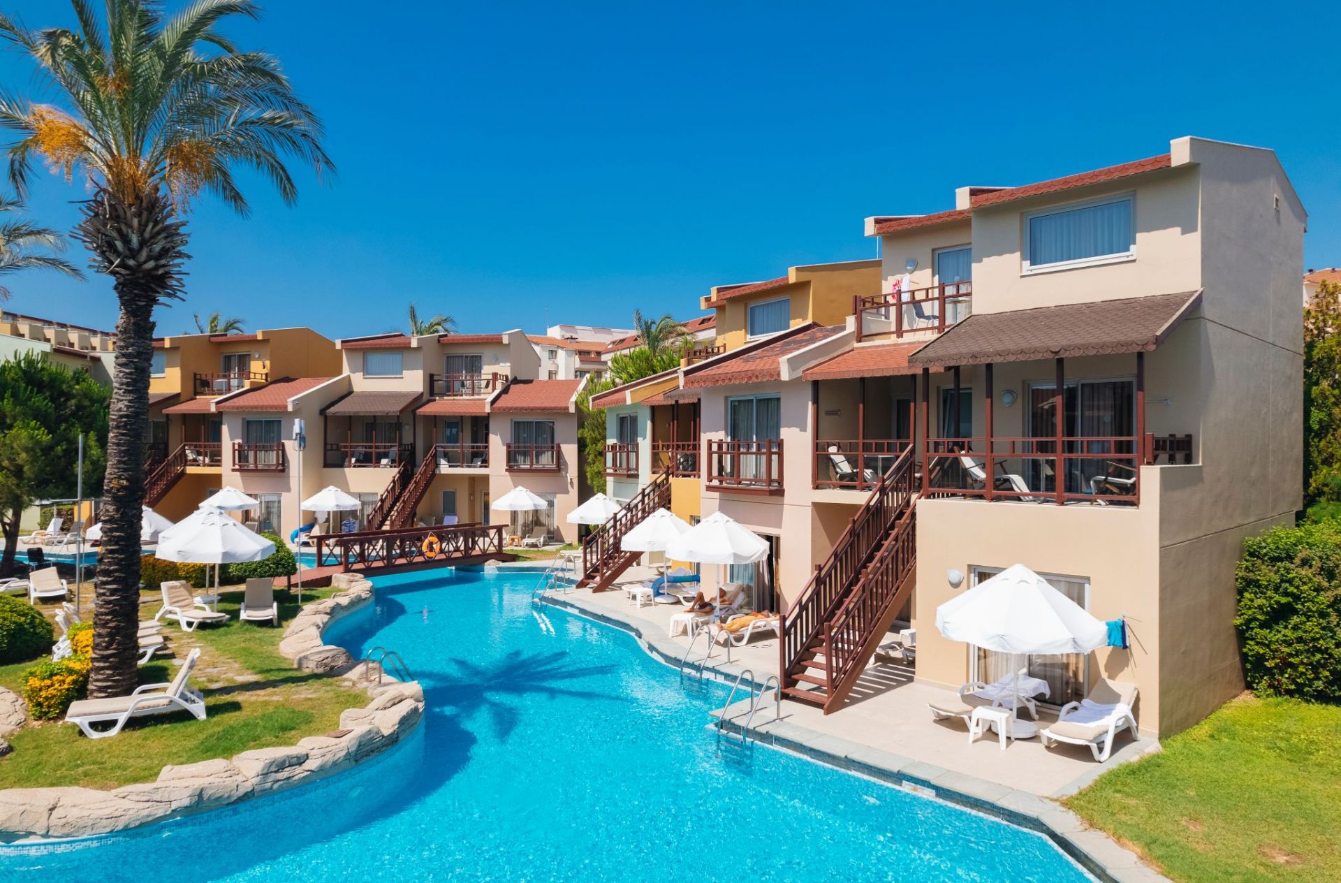 Стаи Main Building: 614 Maing Building Standard Room (изглед градина или море, 27-30 м2), 49 Main Building Family Room (2 спални, баня, изглед градина или море – 38 м2), 16 Main Building Suite Room (спални и всекидневна с изглед градина или море, 50-62 м2).