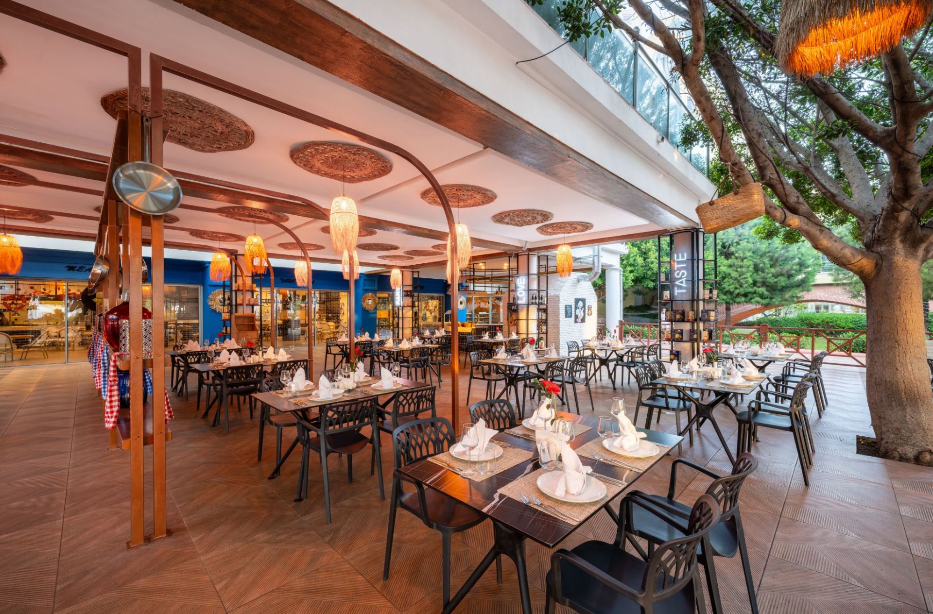 Основен ресторант, Lake Houses ресторант, 5 а-ла-карт ресторанта (турски, интернационален, мексикански, италиански, рибен - 1 безплатно посещение на един от ресторантите, при минимум 7 нощувки, с предварителна резервация), снек ресторант, гьозлеме, сладкарница, 8 бара, кафетерия, диско клуб, 5 открити и 1 закрит басейн, аквапарк с 14 пързалки, 5 конферентни зали, СПА център, магазини, паркинг.