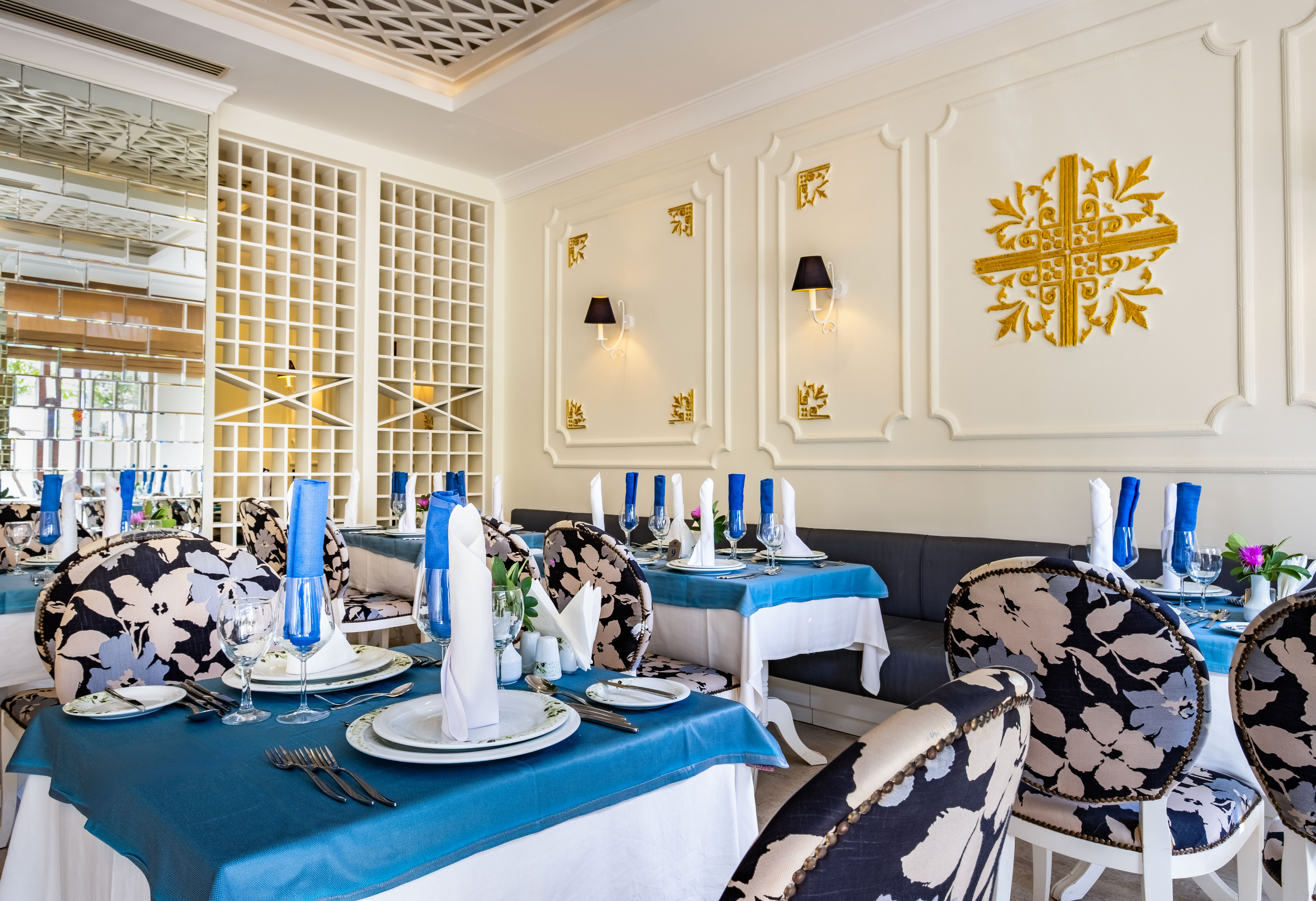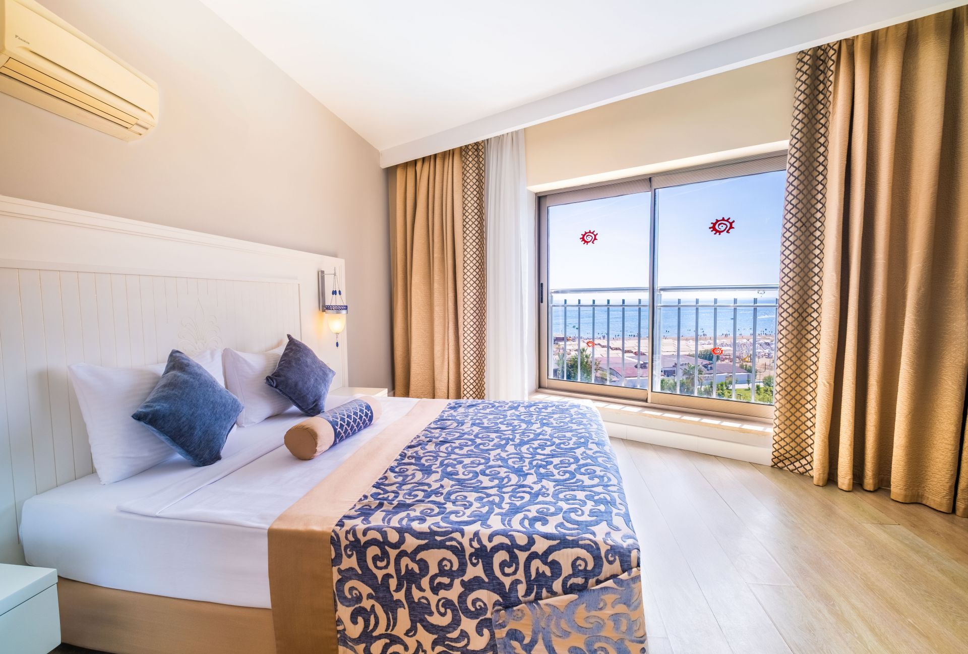 Хотелът разполага с общо 300 стаи, всички оборудвани с климатик, телевизор, телефон, баня с душ/вана, сешоар, минибар, сейф (платен). Почистване на стаите - всеки ден, смяна на спалното бельо и кърпите – 2 пъти в седмицата.