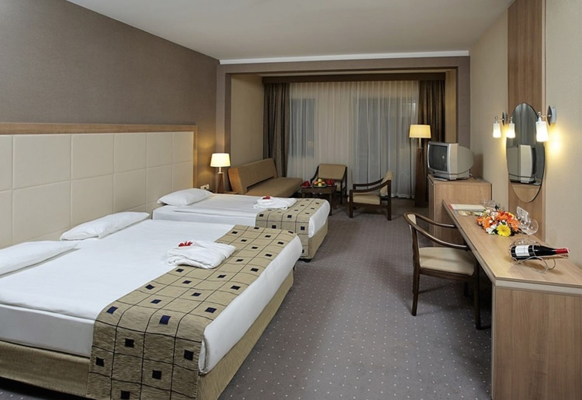 Всички стаи са оборудвани с климатик, телевизор, телефон, баня с душ, сешоар, сет за чай/кафе, минибар (безплатен), сейф (безплатен).