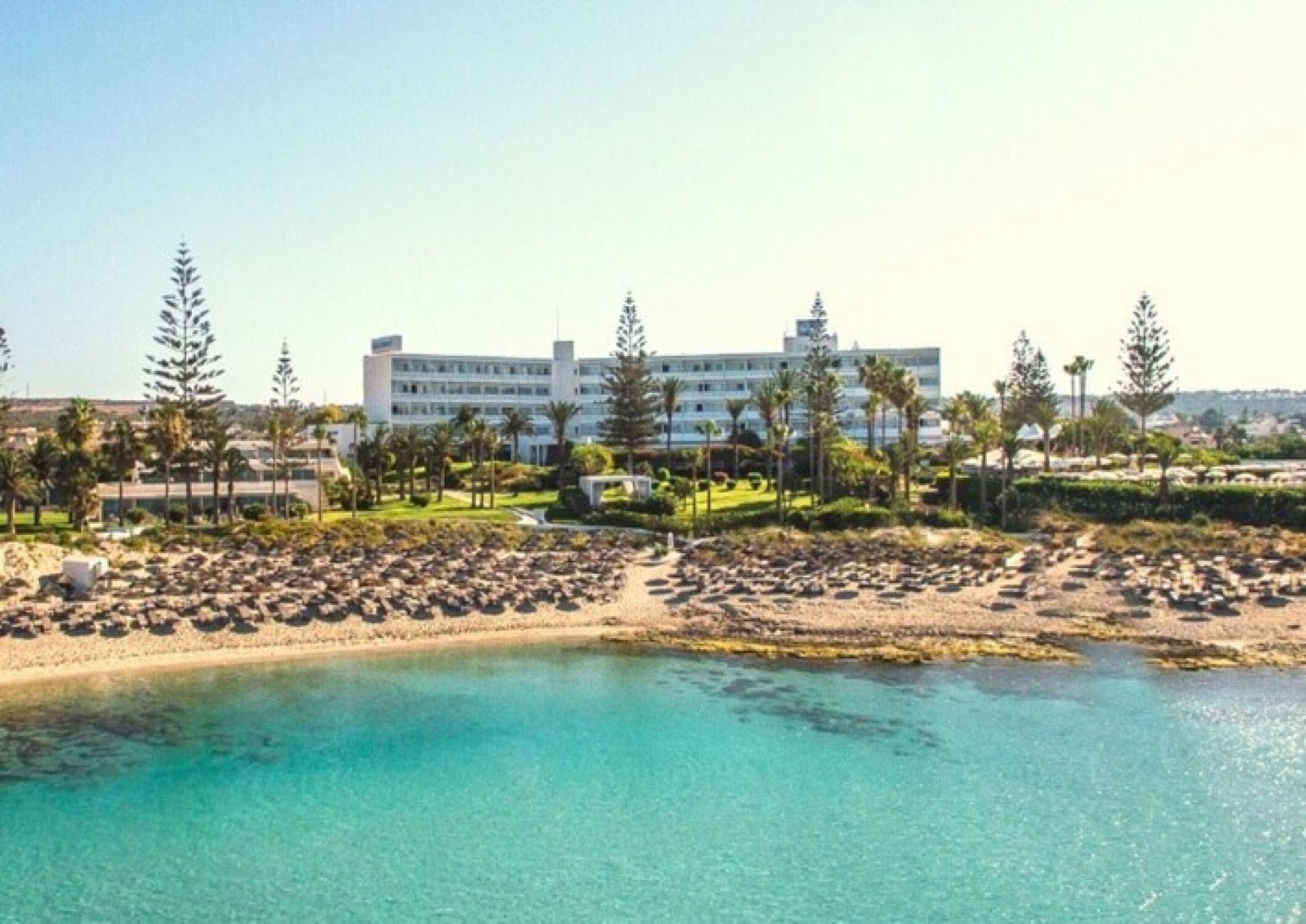 Nissi Beach Resort е разположен край частен плаж на Средиземно море, този 4-звезден хотелски комплекс има 3 басейна и тропически градини с площ 100 000 м². Предлага СПА център със сауна, хидромасажна вана и масажни процедури.