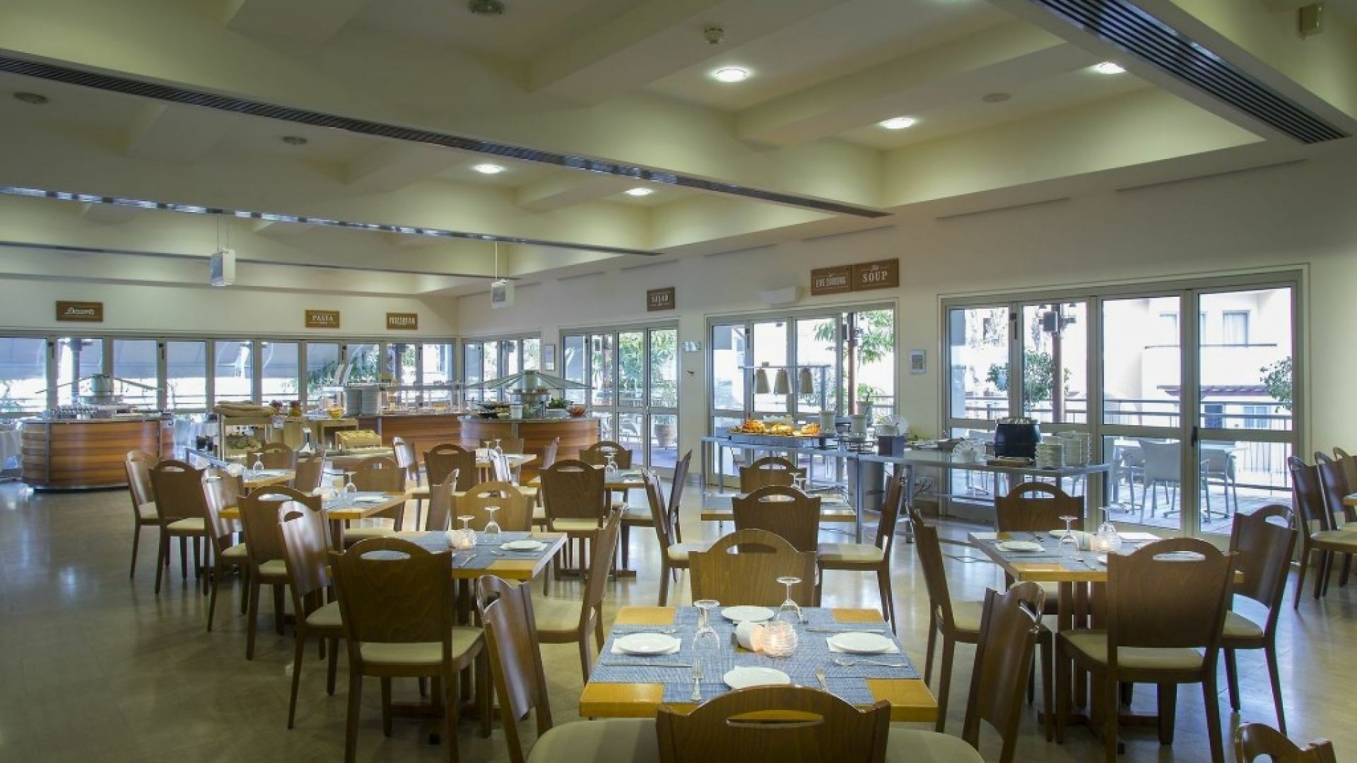 Хотелът разполага със СПА център, сауна, бар, безплатен Wi-Fi навсякъде и безплатен частен паркинг, 2 основни басейна за деца, тенис корт, фитнес зала, игрище за плажен волейбол, аеробика и билярд. Климатизираните стаи разполагат с телевизор с плосък екран, сейф и кухненски бокс с хладилник и кафе машина. Някои стаи имат кът за сядане. Самостоятелната баня е с вана или душ и сешоар.