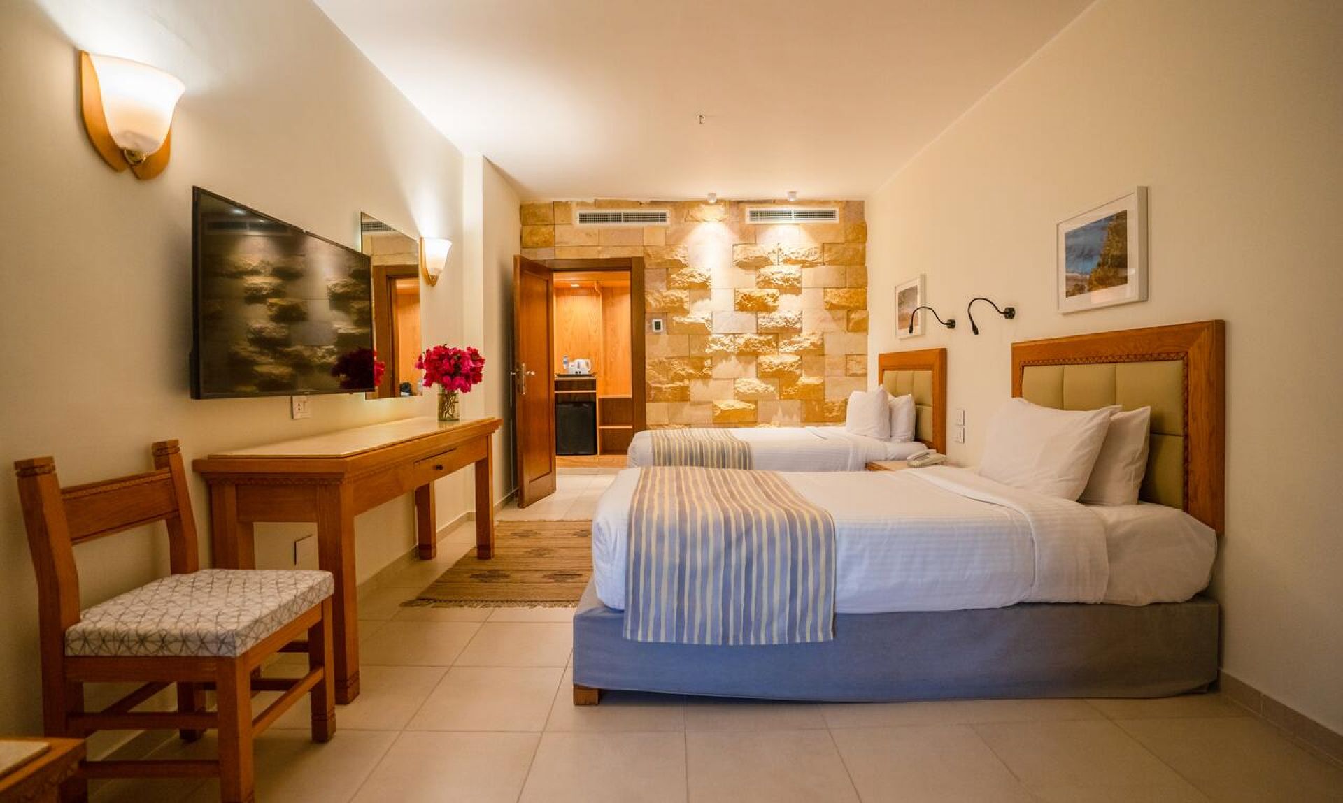 Хотелът разполага с общо 471 стаи, разположени в две 4-етажни сгради и три 1 и 2 етажни вили - Standard room (Sea side view, макс. 2+1 чов., само едно допълнителон легло за стая, 28-35 м2), Superior Room (Sea Side/Sea view, само едно допълнителон легло за стая, 32-42 м2 ); Family Room (Garden/Pool view, 1 стая, само едно допълнителон легло за ста, 44 м2), Family Suite (Sea/Garden view, две спални с врата, 44 м2 вкл. баня и балкон); Superior Suite (Sea/Garden view, една спалня, гостна, 38 - 44 м2 вкл. баня и балкон); Presidential Suite (Sea/Garden/Pool view, една спалня, гостна, 48 м2 вкл. баня и балкон);Villa one bedroom (една спалня, гостиная, есна баня и тераса); Duplex Villa (две спални, гостна, две бани и тераса). Всички стаи са оборудвани с климатик, телевизор, телефон, баня с душ, сешоар, сейф (безплатно). Почистване на стаите и смяна на кърпите - всеки ден, смяна на спално бельо – 3 пъти в седмицата.