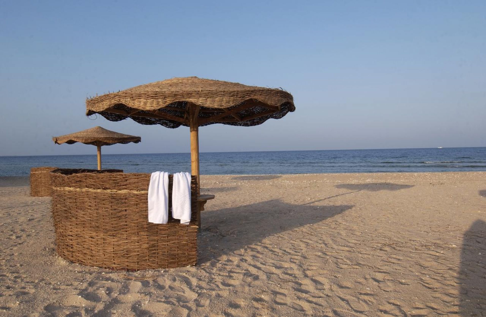 Собствен, на 2.5 км от хотела, пясъчен, безплатен шатъл до плажа. Чадъри, шезлонги и плажни кърпи на плажа и при басейна - безплатно.