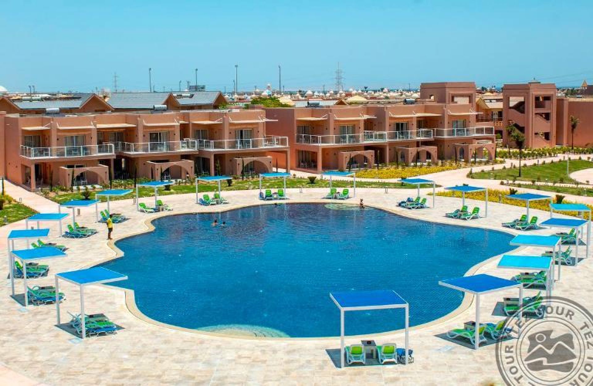 На 15 км от летище Хургада, на 25 км от центъра на града, на втора линия.Хотелът се състои от комплекс от двуетажни бунгала.